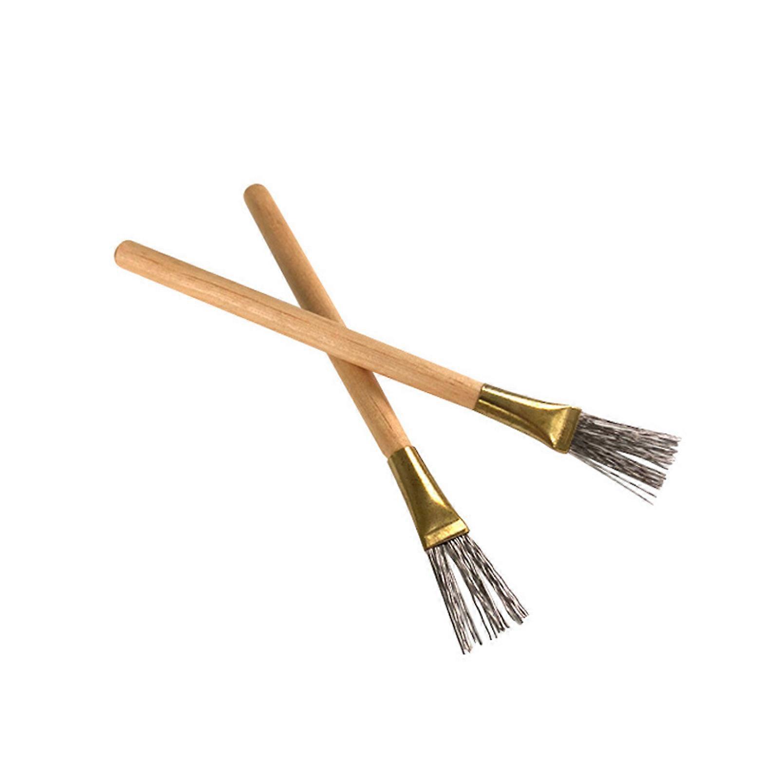 Pack of 2 Wood Handle Stainless Brushes for Clay Sculpting Ceramic Art Tools with Ergonomic Design Artists Choice Multicolor