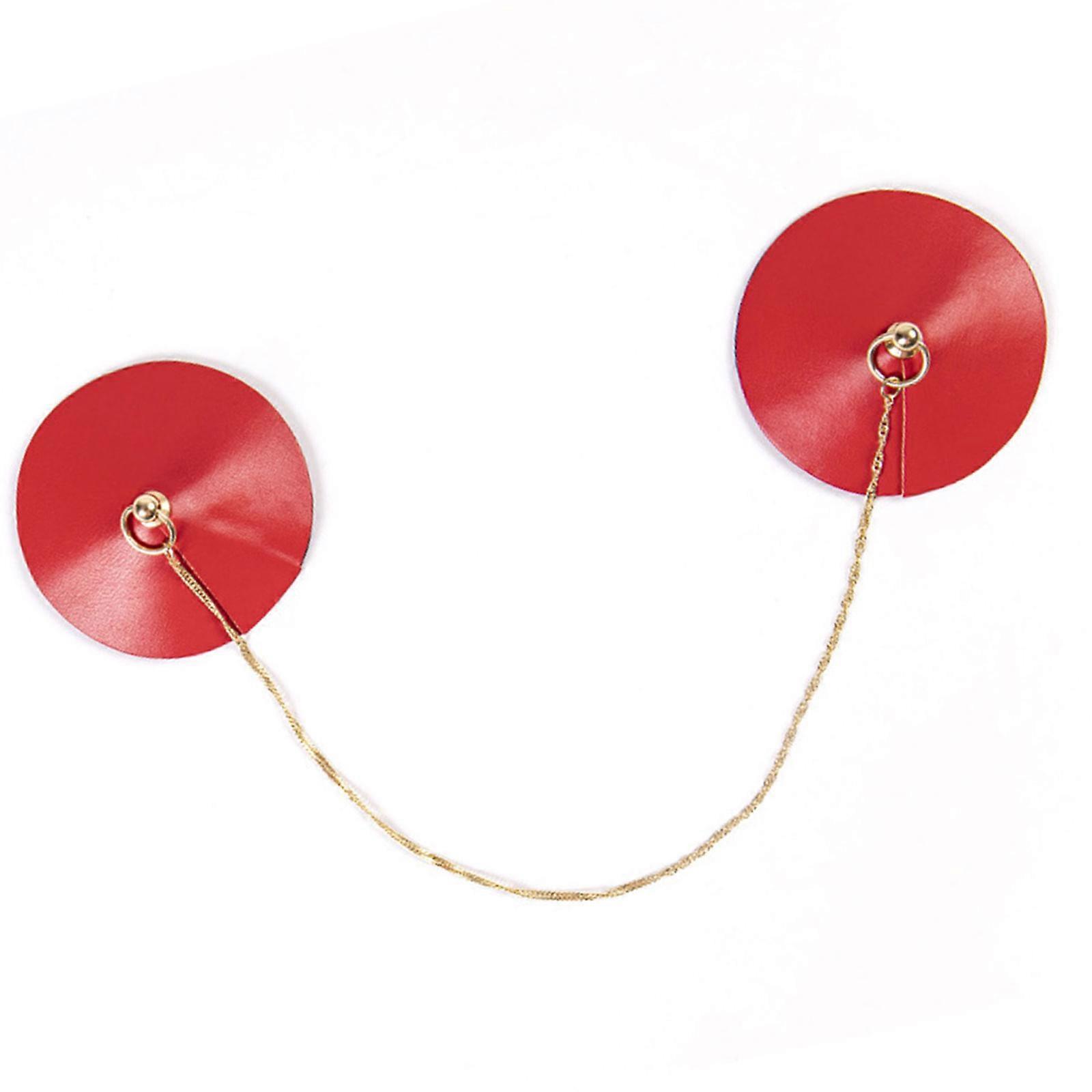 Women PU Leather Pasties Nipple Covers with Chain Adhesive Reusable Bra Petal Chest Stickers Lingerie Accessory Red