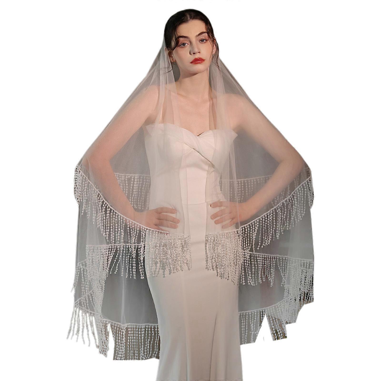 Romance Tulle Bridal Veils Two Tier Fringed Design Secure Hair Comb Wedding Veils For Bride Photography Chapel Event White