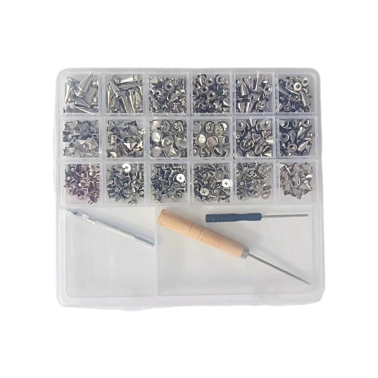 455Pcs Punk Decorative Studs 11 Size Cone Spikes Hardware Set Including Punching Rod And Wood Awl Multicolor