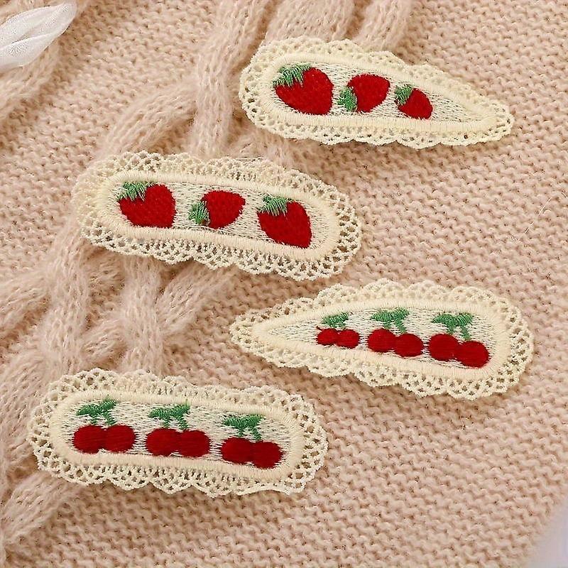 4pcs Vintage Cute Strawberry Cherry Hair Clips, Lace Floral Elliptical Hair Accessories, Retro & Adorable Hair Pins for Classmates, Gatherin