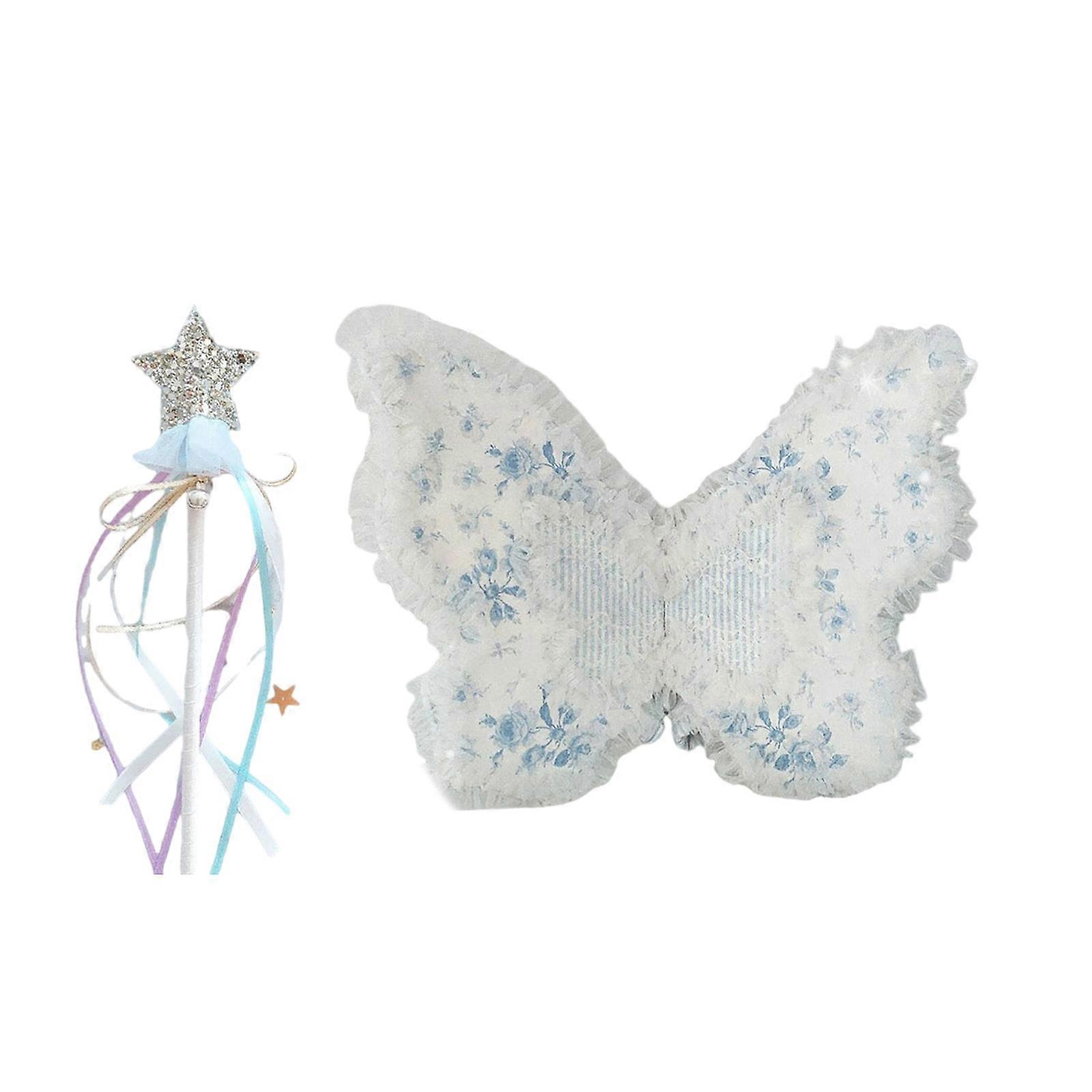 Cloth Fabric Butterfly Wing with Headgear and Wand Set Photo Props for Girls Pretend Play Costume Accessories Multicolor