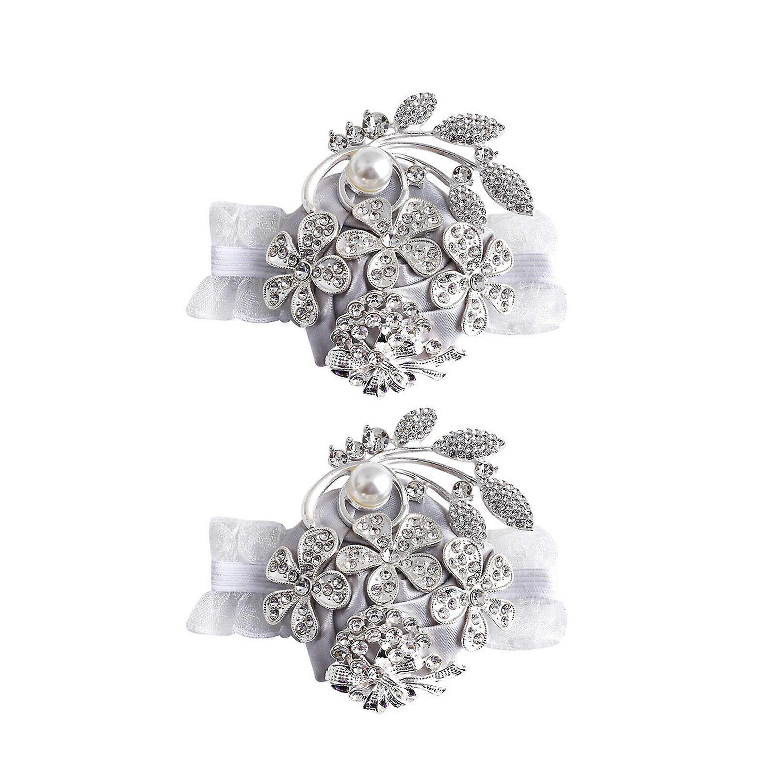 Stylish Wedding Party Wrist Flowers Ribbon Pearls Wristlets For Bridesmaids Groomsmen Bridal Showers Celebration Silver