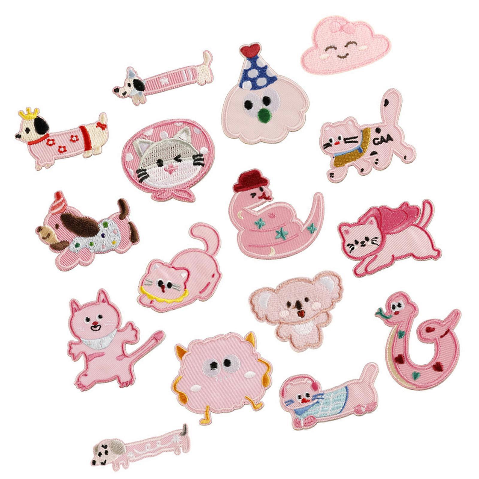 17Pcs Cartoon Animal Pattern Iron On Fabric Patches Embroidery Applique For Kids Clothing Backpacks Hat Bag Sewing Multicolor