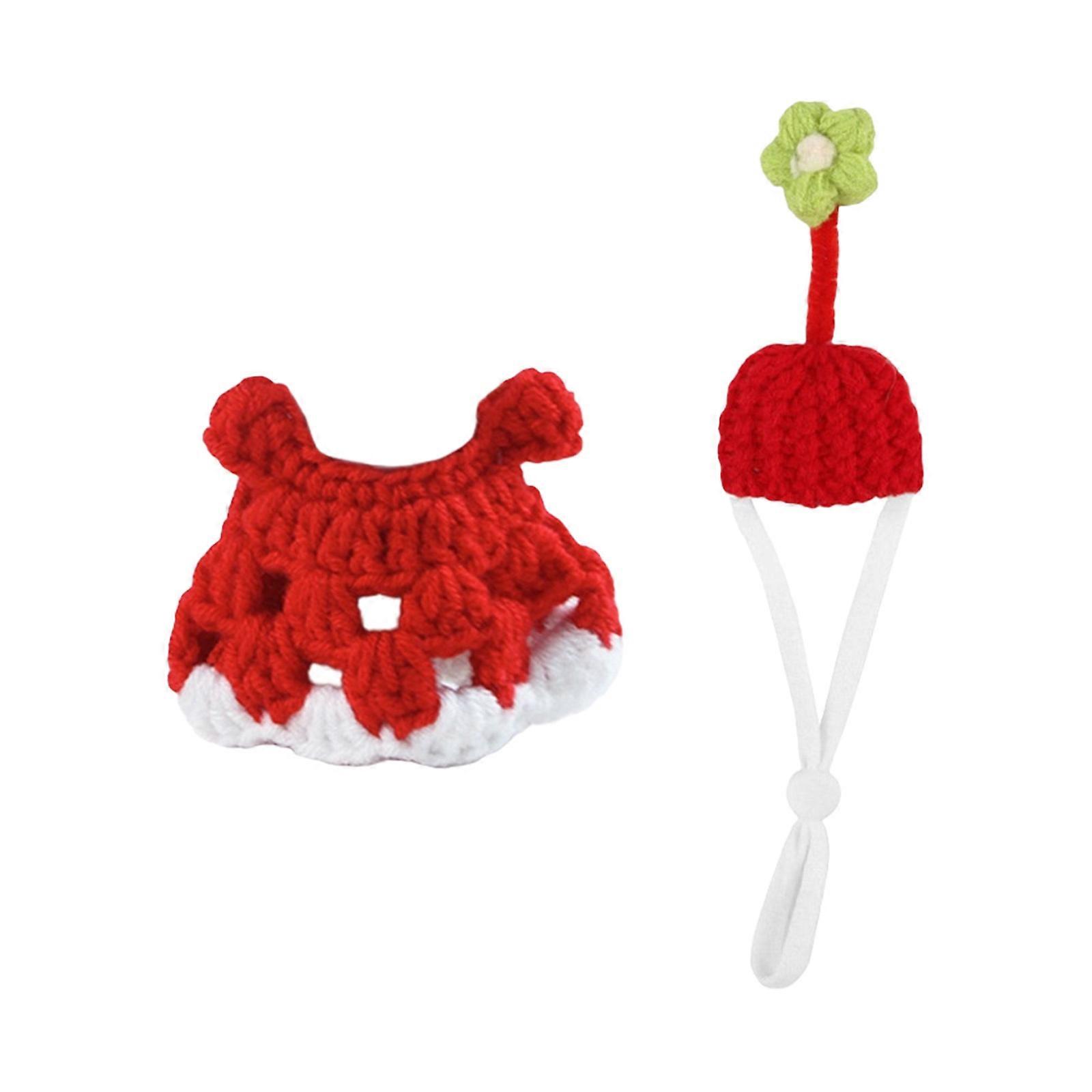 Corresponding Plaited Dress And Cap Set For Pet Rodents Soft Aerated Polyester Costume For Festive Occasions Red