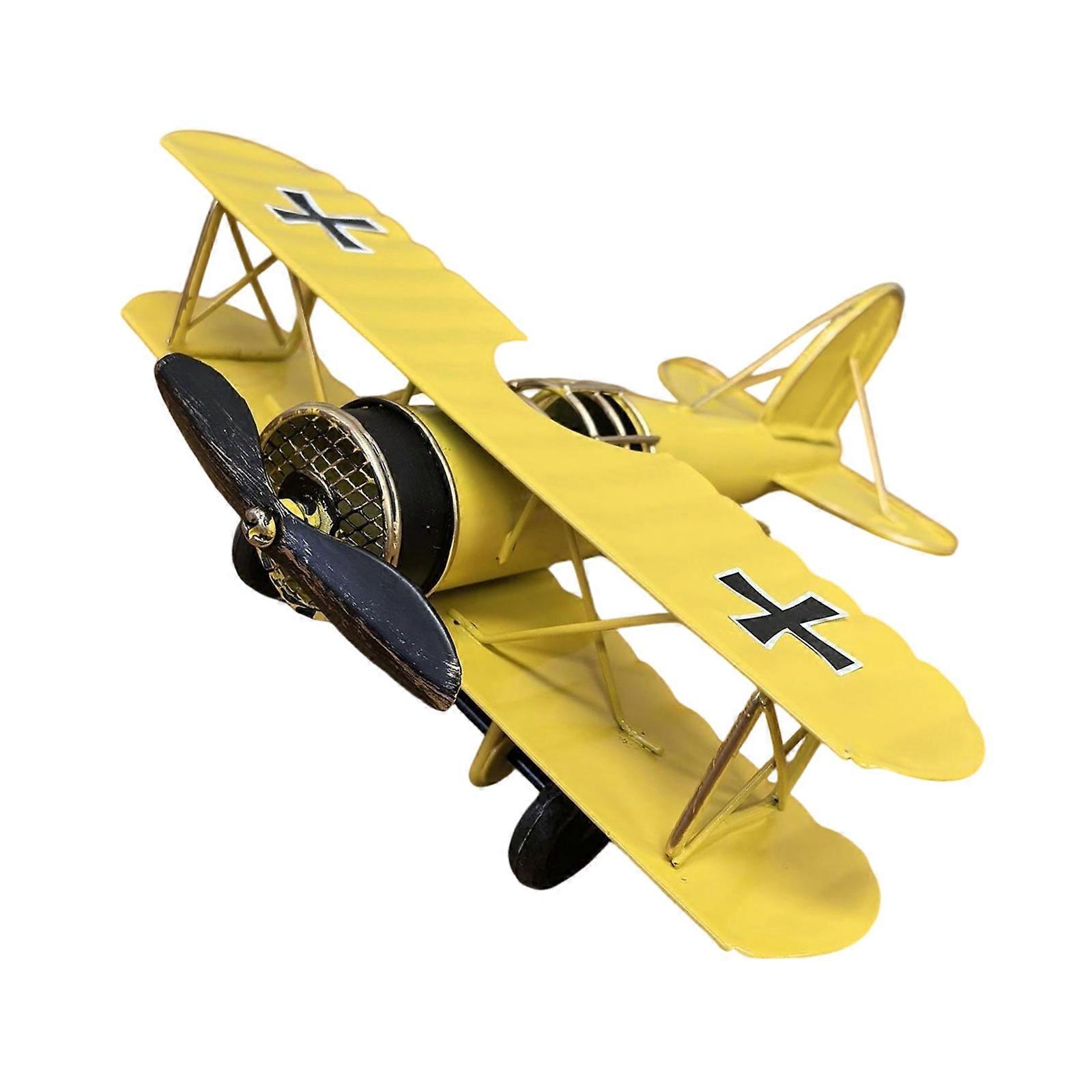 Metal Iron Biplane Plane Aircraft Model Hanging Plane Handicraft Ornament Desktop Decoration Home Decors Photo Props L Yellow