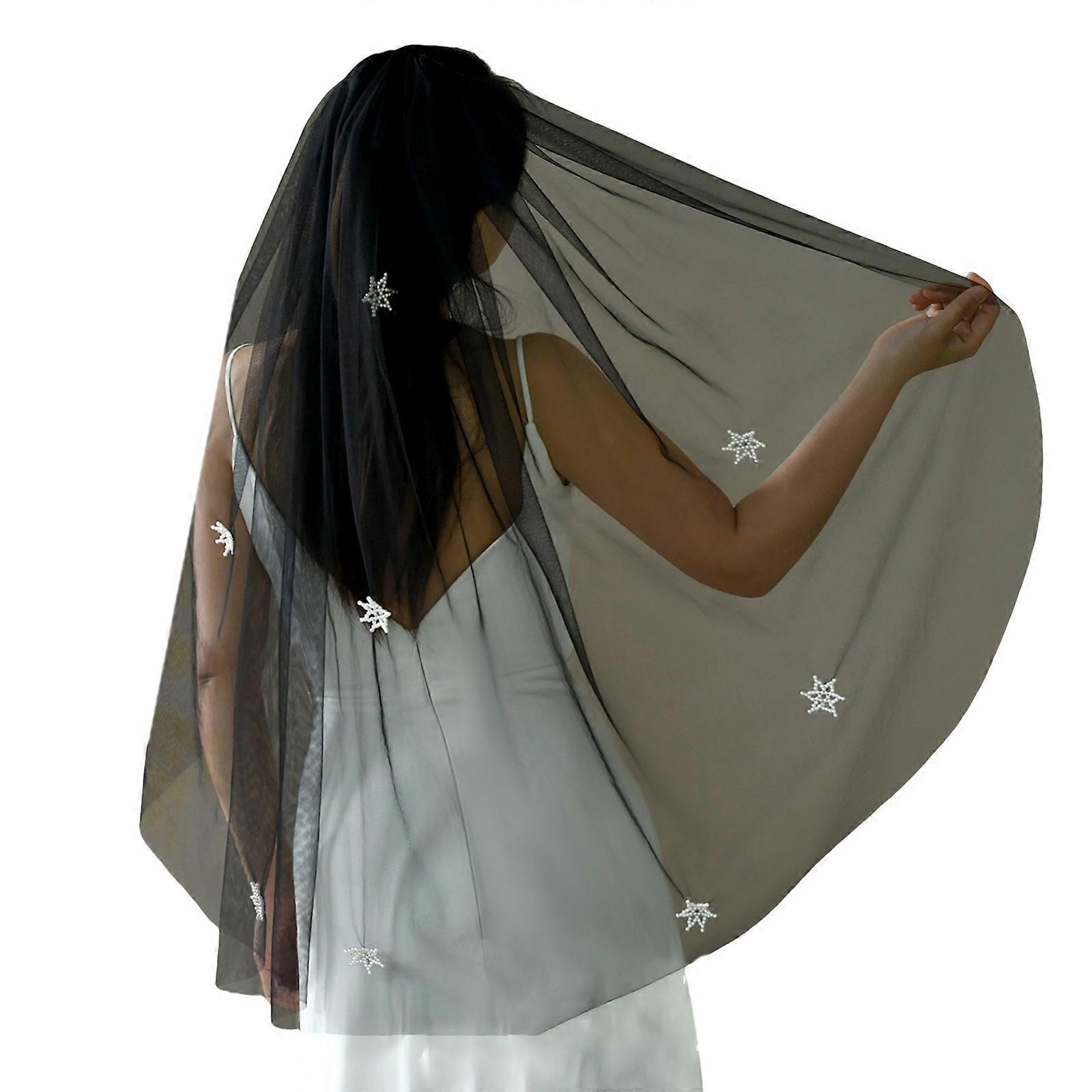Pearls Studded Black Sheer Bridal Shower Headpiece with Hair Comb For Various Hairstyles Comfortable All Day Wear Black