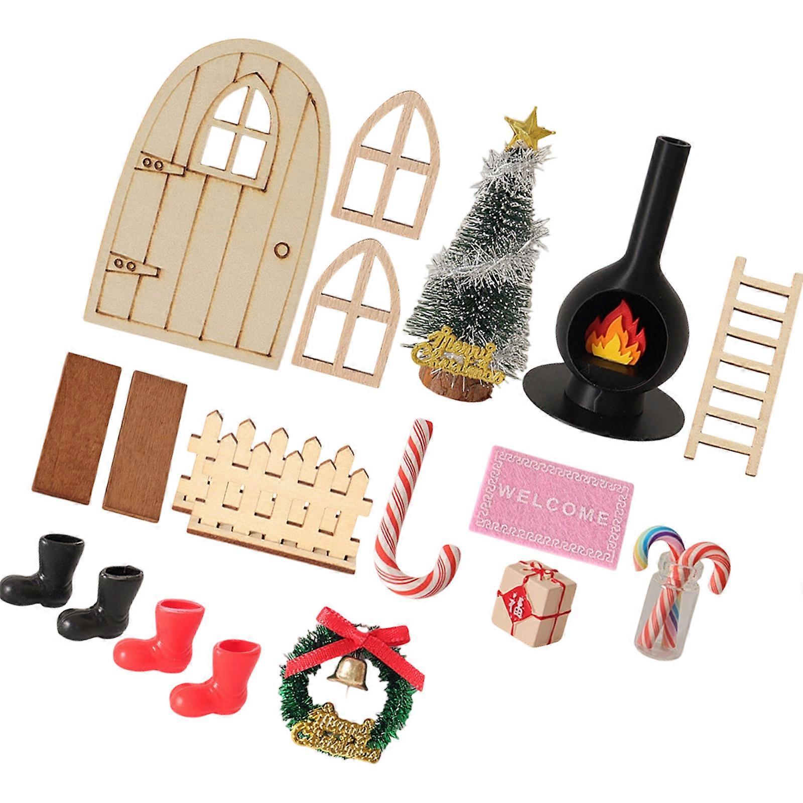 Nordic FairyTale Elf Door Miniature Scene With Festival Accessory Christmas Decoration For 1/12 Doll House Display Multicolor