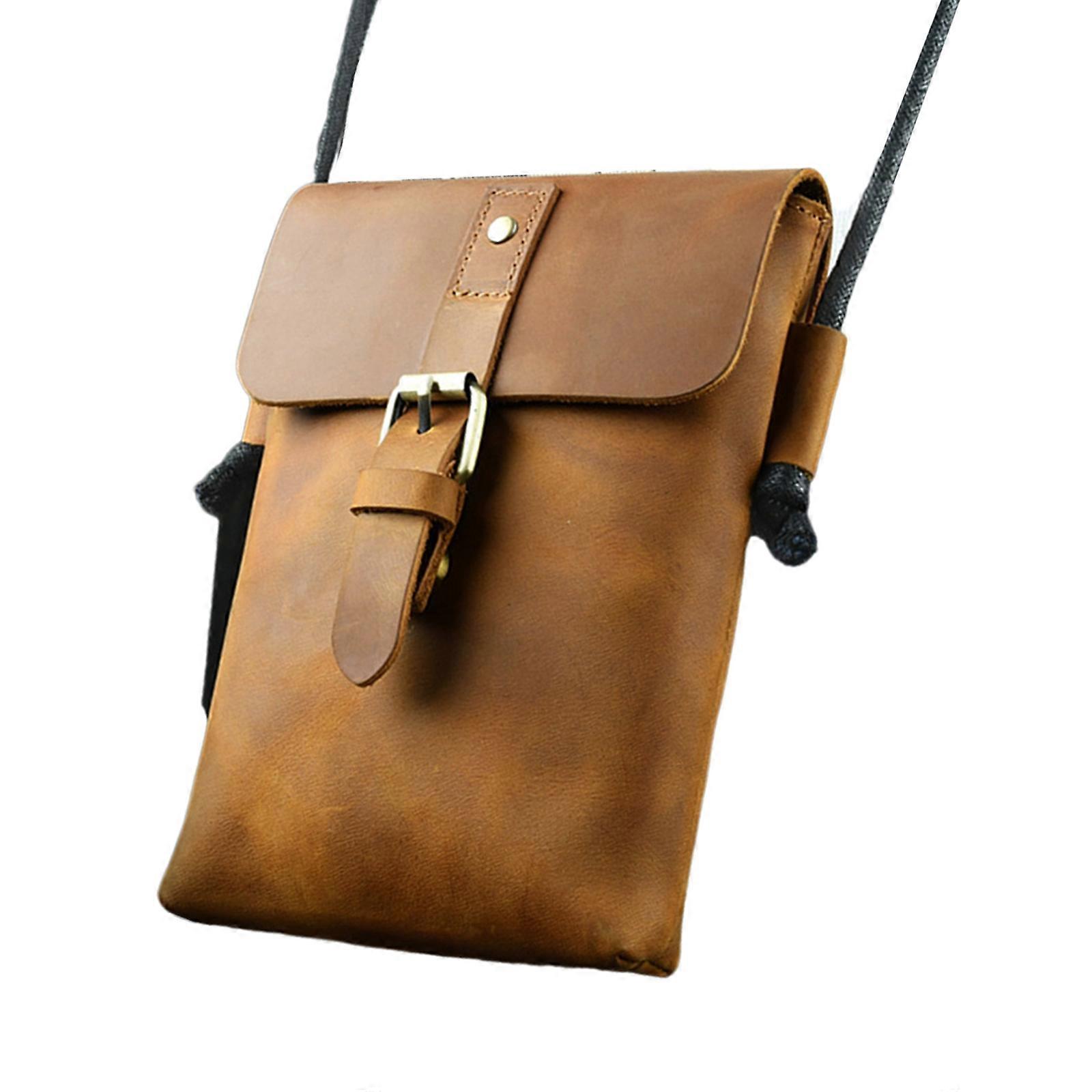Mens Genuine Leather Waist Pack Crossbody Bag Multi Pocket For Daily Use Travel Brown.