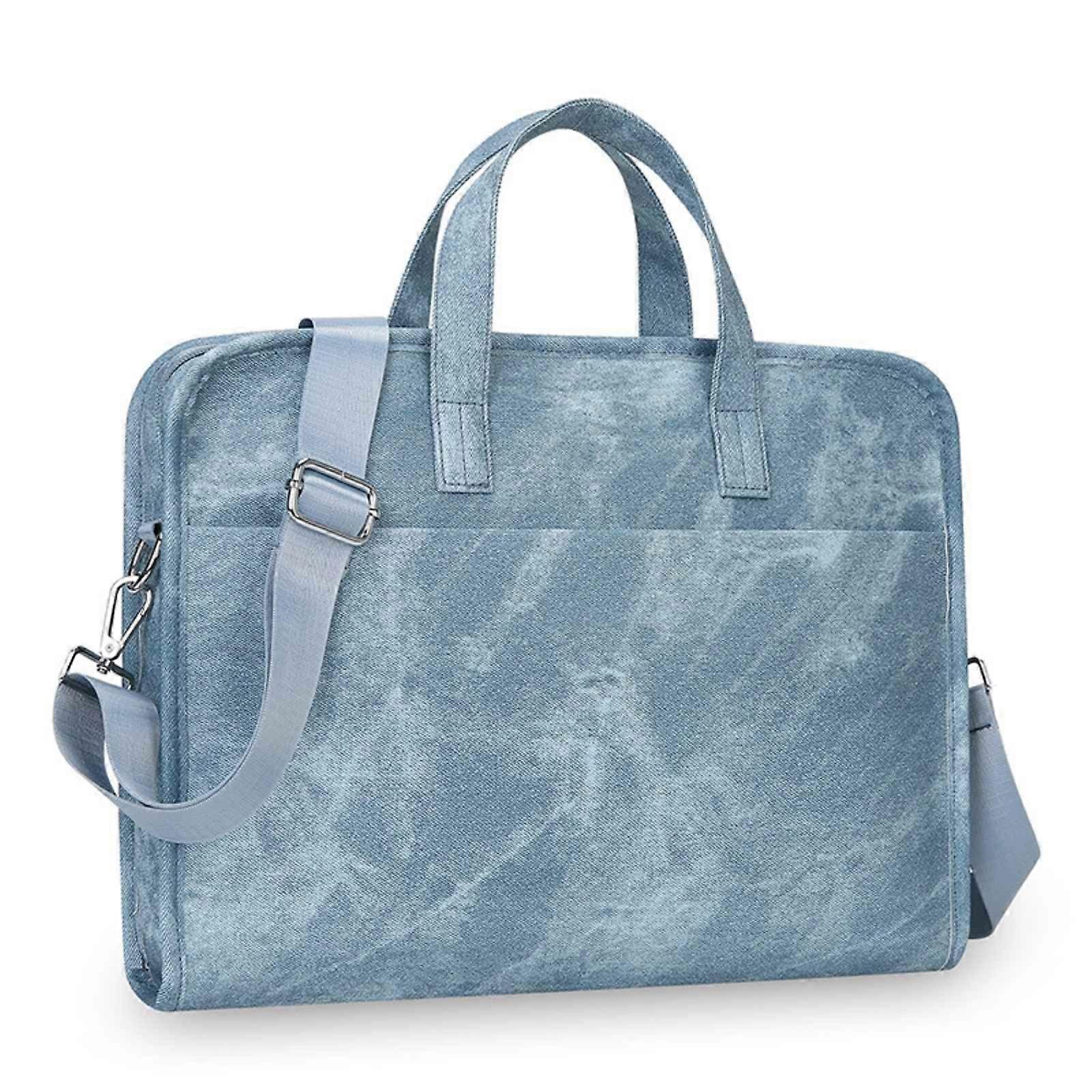 Multifunctional 14inch Laptop Shoulder Bag Water Resistant Fabric Spacious Pockets Adjustable Straps For Work Travel And Daily Use Sky Blue