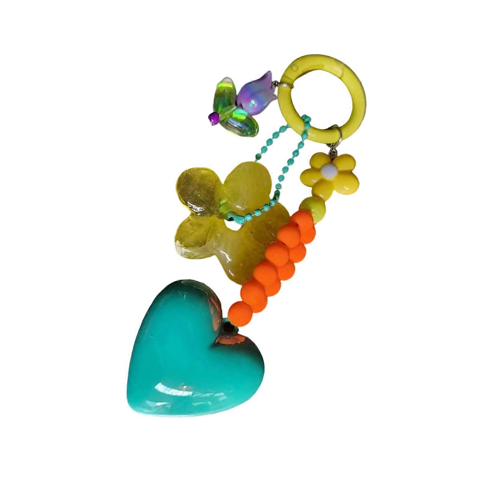 Fashionable Heart Key Holder with Sweet Floral Accent Girls Room Accessory Pastel Color Heart Keychain Pendant Multicolor