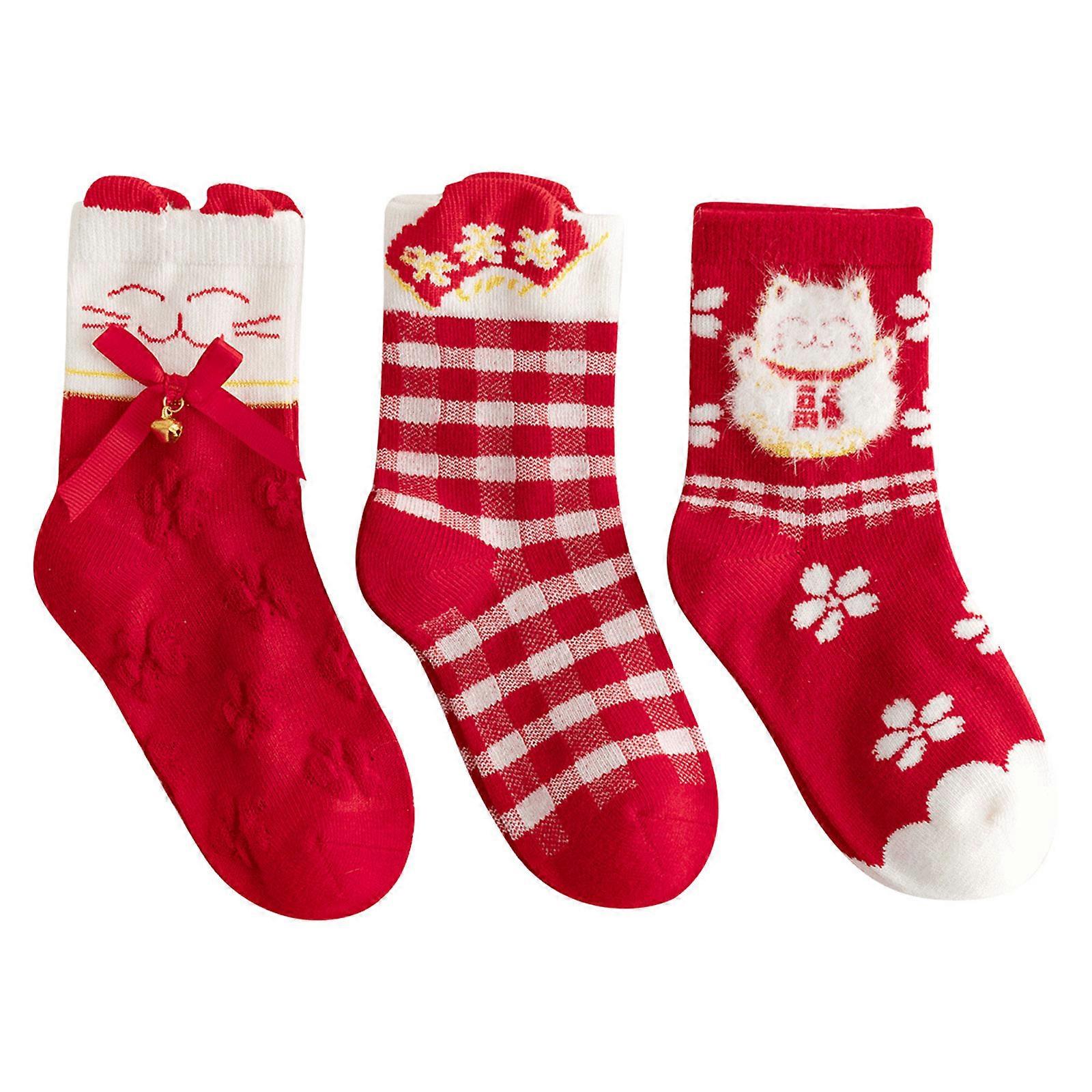3 Pair Christmas Red Cotton Socks For Kids Warm Winter Socks With Elastic Cuffs Skin Friendly For Holiday Season Red XL