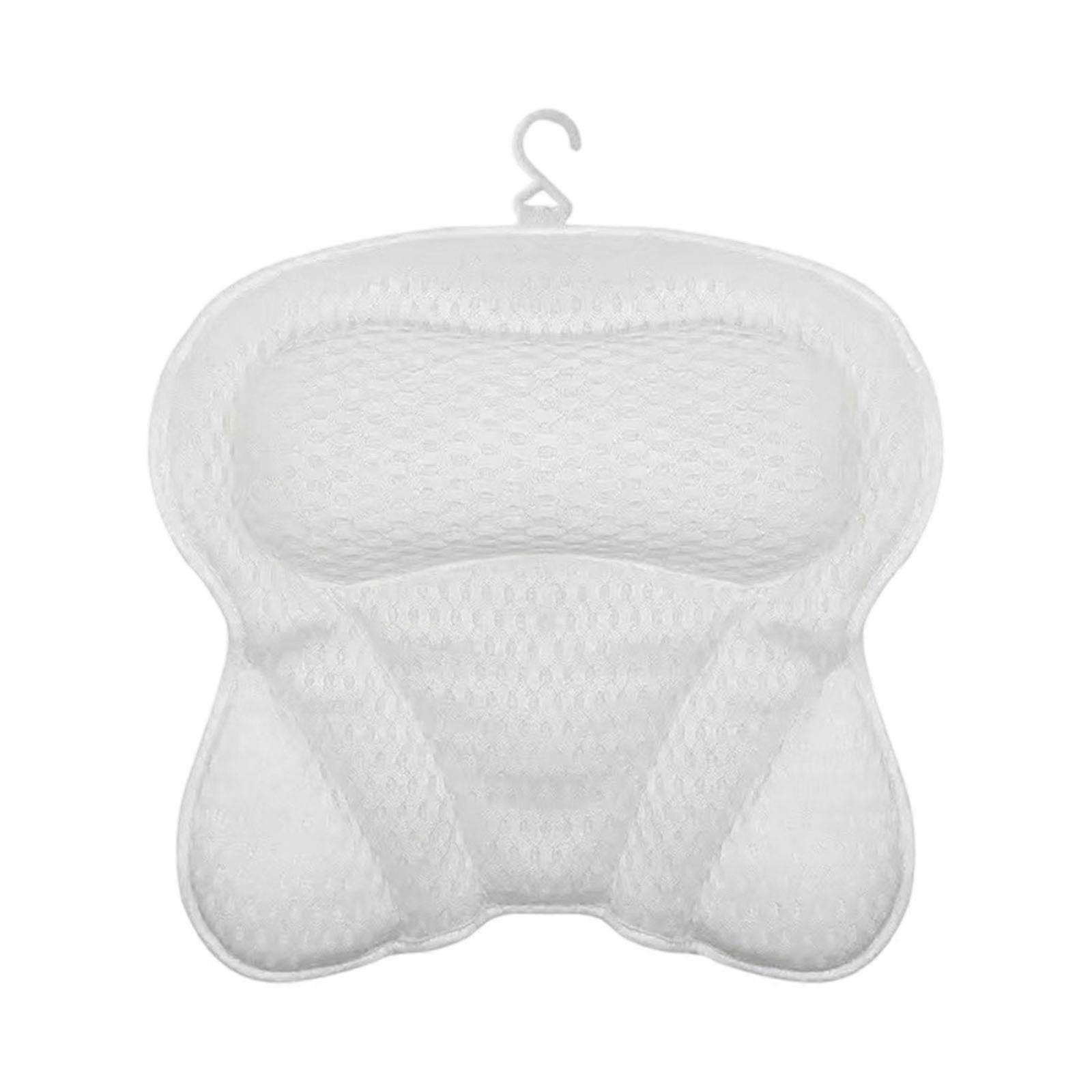 Ergonomic Bathtub Pillow With 6Suction Cups FlexComfort Technology Thick Support Machine Washable Air Mesh For All Tub Type White