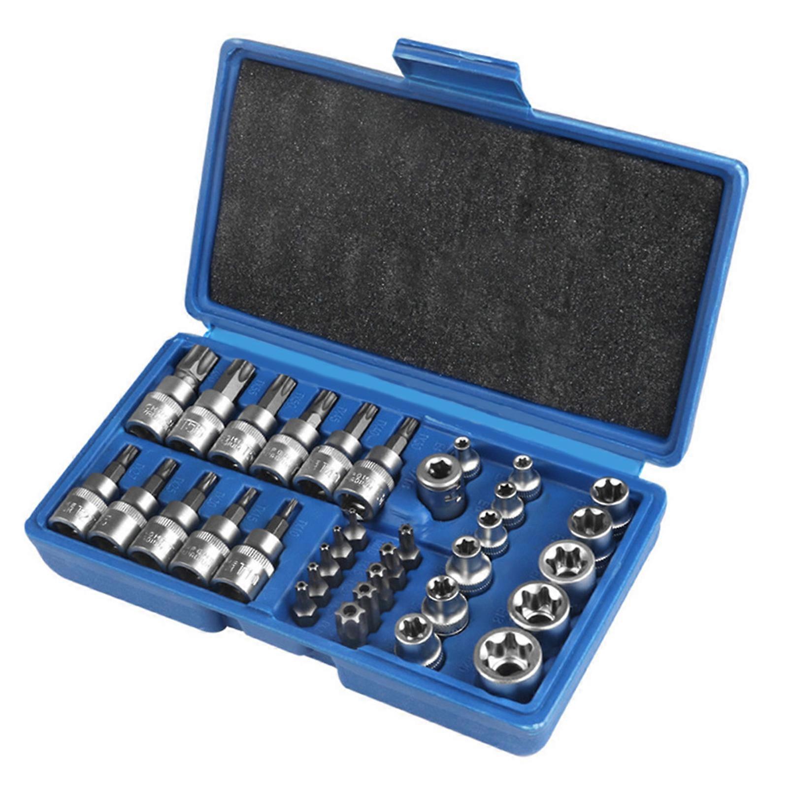 Multifunctional 34Pieces 3/8'' Drive Socket and Bit Set with Storage Box Tamper Proof Bits for Household and Workshop Multicolor