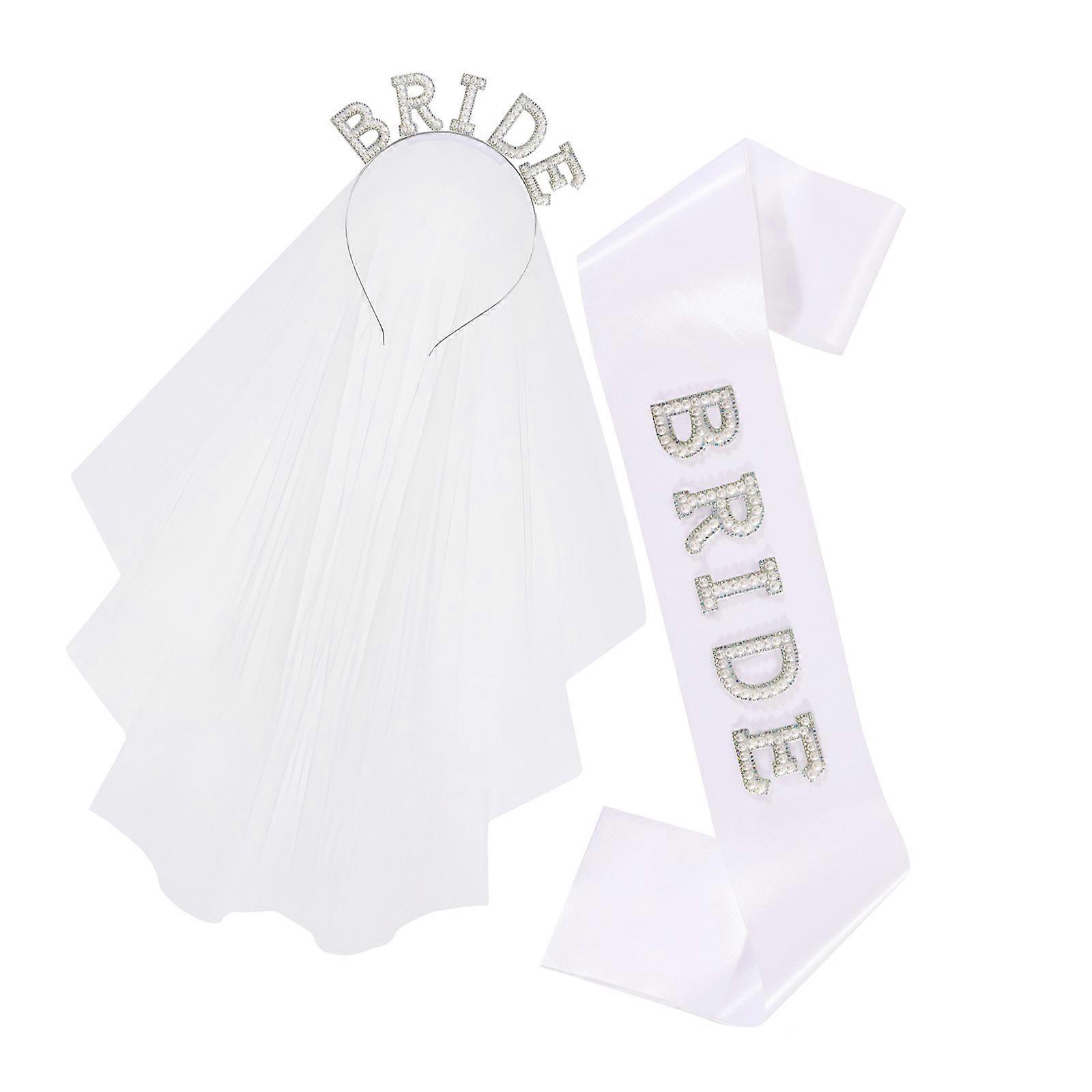 Elegant Wedding Hairpiece Set Including Crystal Letter Hairband Veil And Adjustable Sash Multicolor