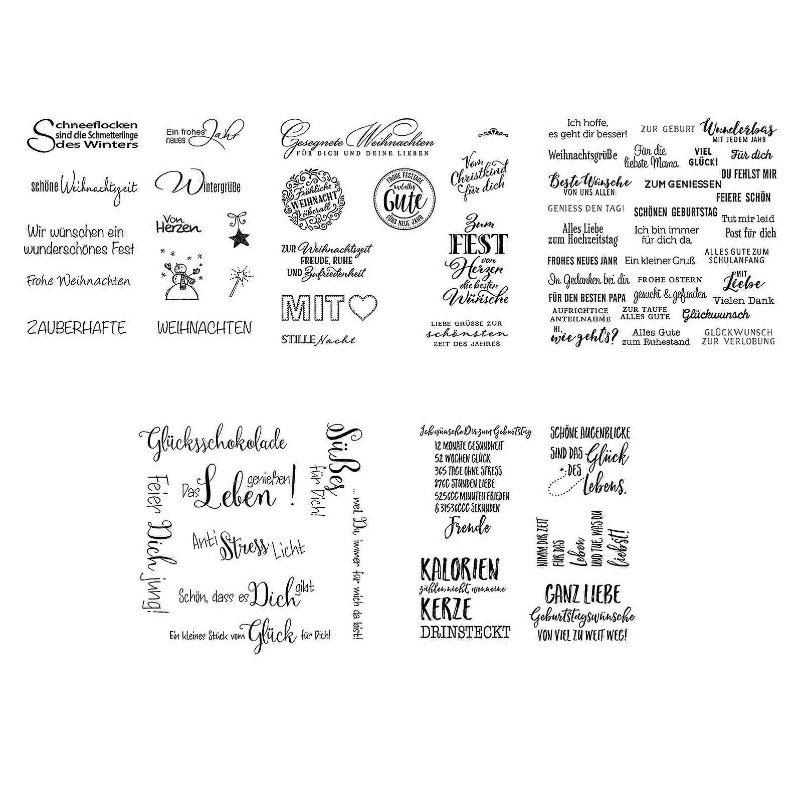 5Pieces German Sayings and Flower Pattern Clear Silicone Stamp for Card Making Journal Scrapbooking Decoration Stamper Multicolor