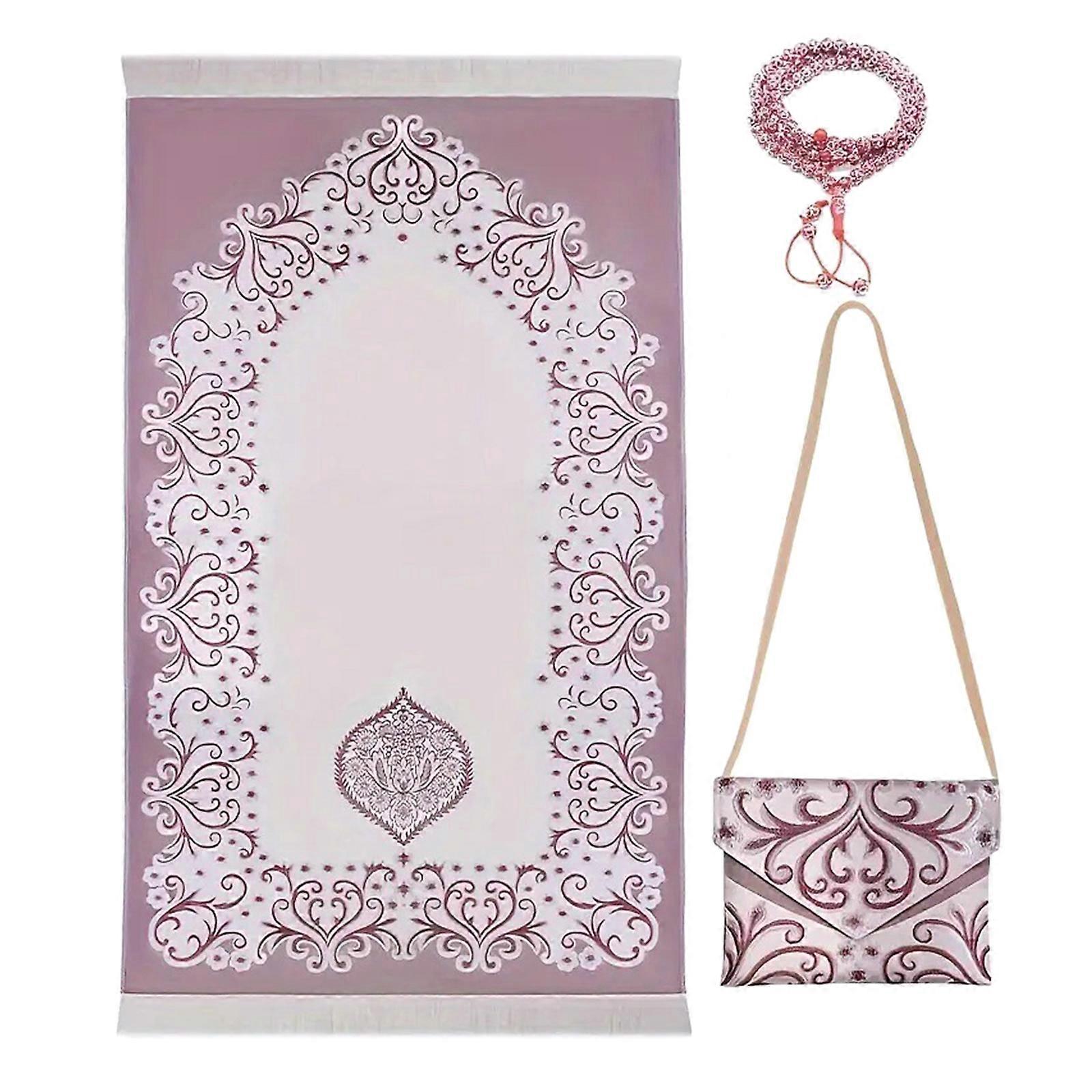Muslims Prayer Rug with Bag and Beads for Men and Women Perfect Ramadans Gift Portable Mat for Eid Travel Praying Red