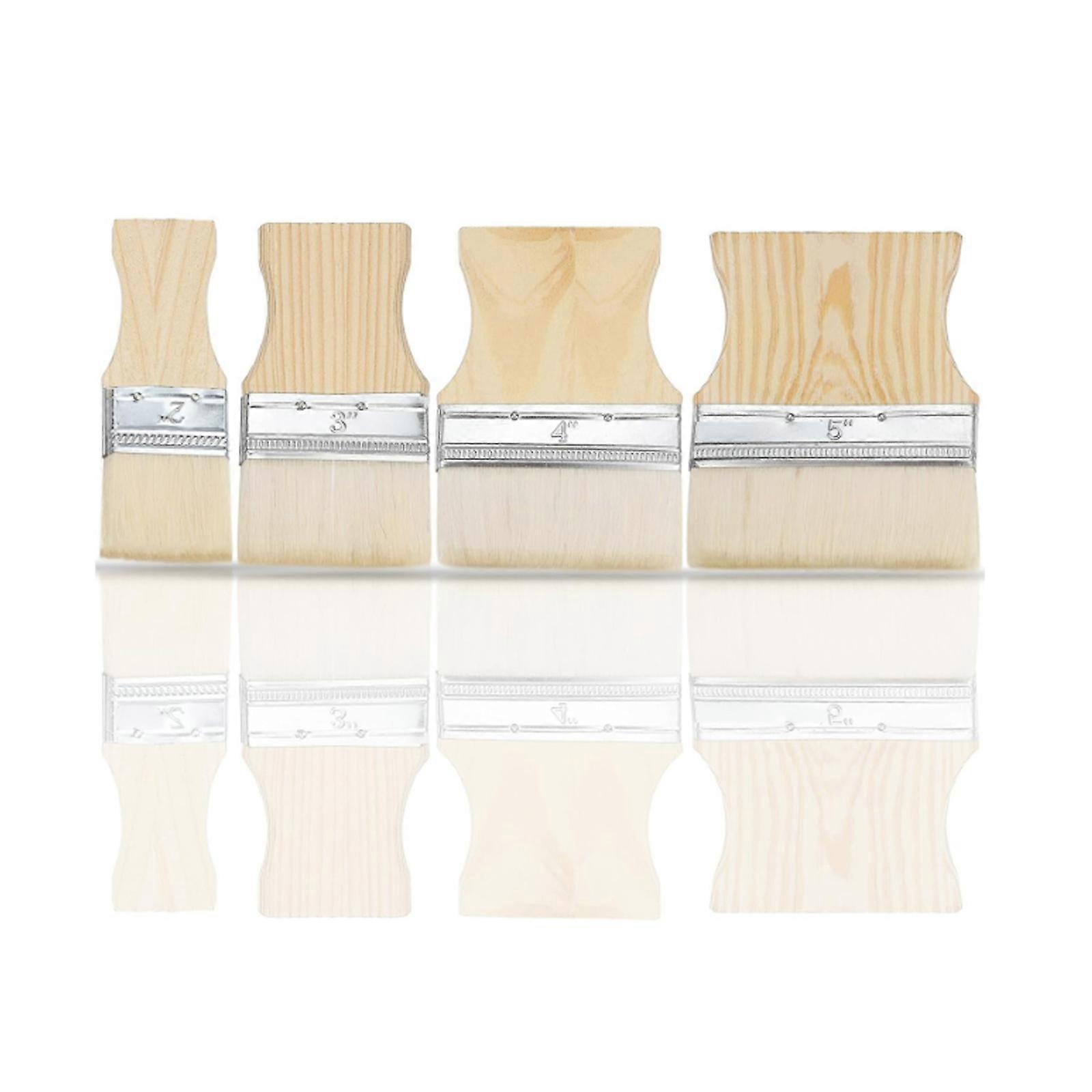 4Pcs Wood Handle Wool Paint Brush Easy Clean Square Flat Paint Brushes Painting Tool for Water Base Oil Base Paint Multicolor