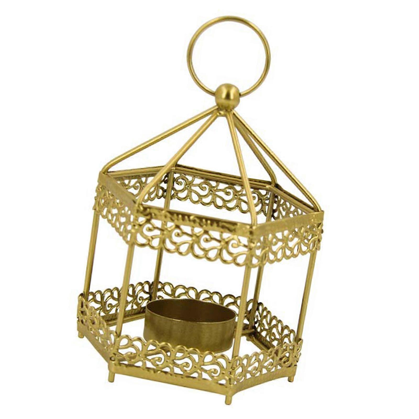 Elegant Metal Candle Lanterns Hexagonal Iron Pillar Candle Holder Stand Handheld Candlestick for Weddings and Gatherings Multicolor