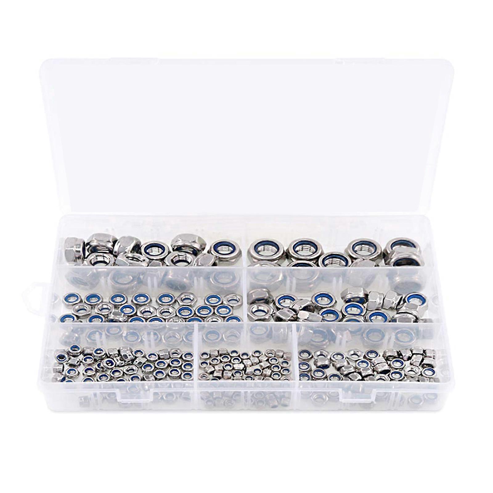 250Pcs Metric Lock Nut Assortment Kits 3/4/5/6/8/10/12mm Stainless Steel Hexagon Locknuts Nylon Insert Nut Enduring Multicolor