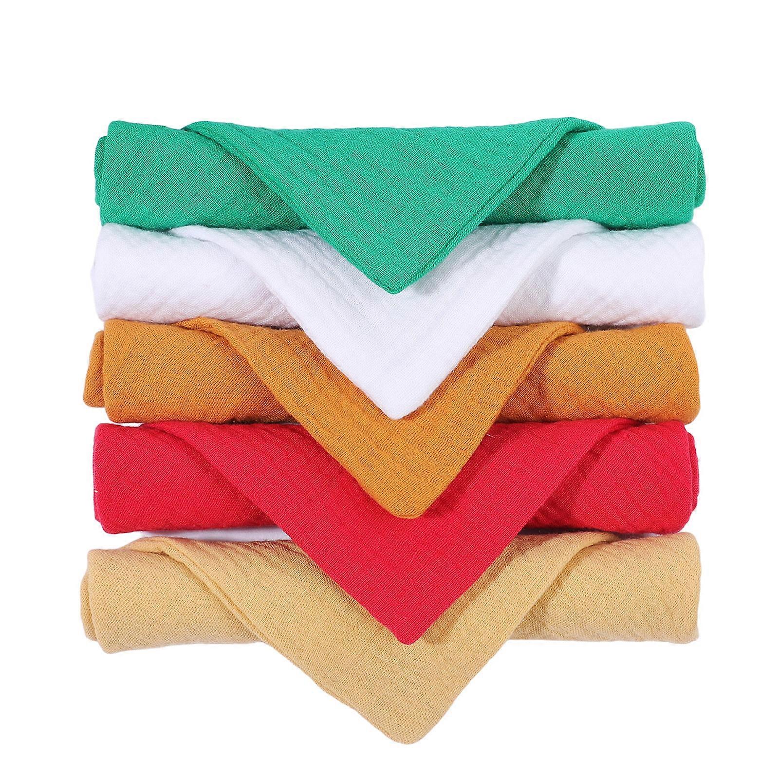 Multipurpose Baby Washcloths, 5Pcs Square Towel Newborns Teething Bib Reusable Wash Cloths Unisex for Boys Girls Multicolor