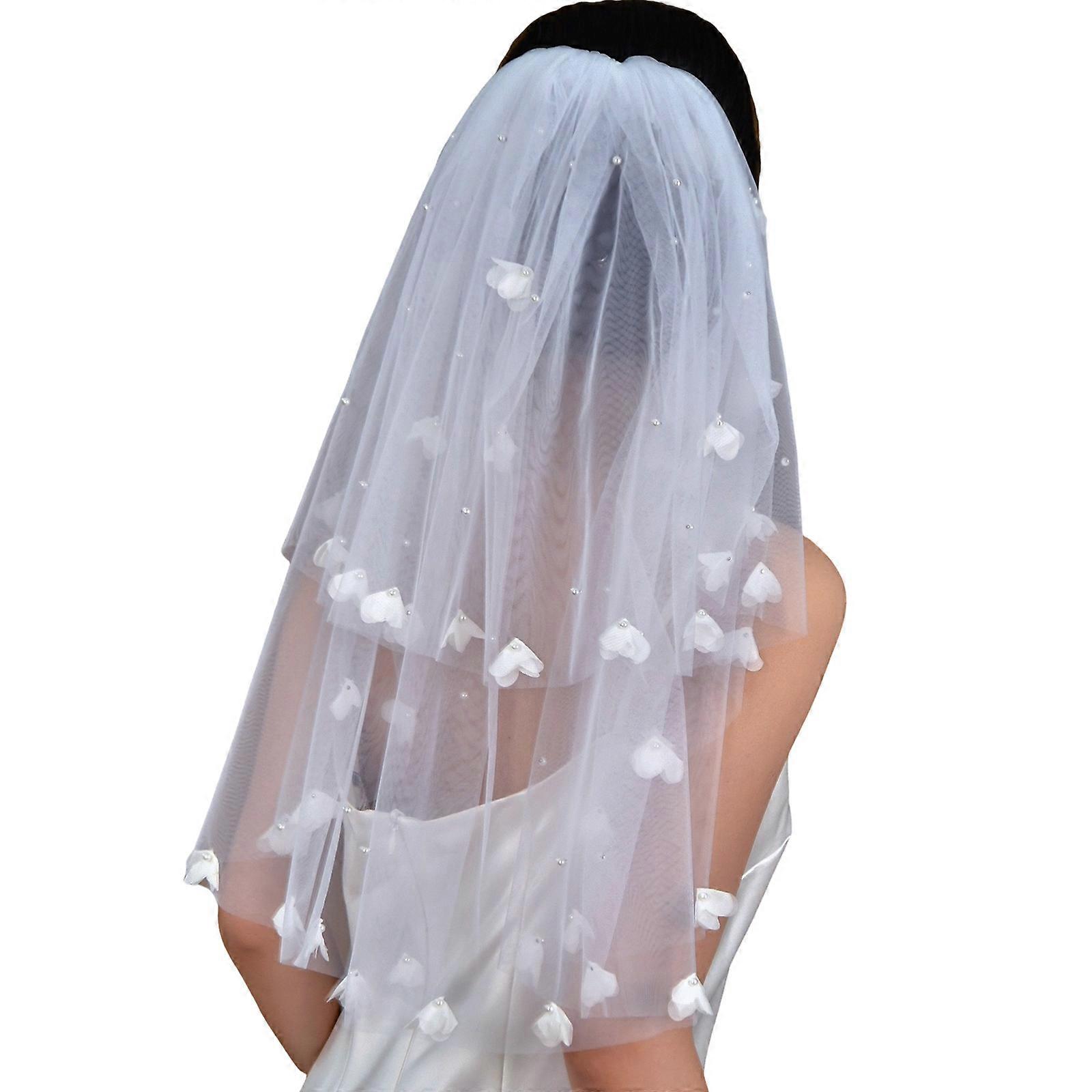 Beadwork Pearls Decors Bridal Veils with Two Layered Design Easy Attachement Hair Comb For Outdoor Wedding Ceremony Props White