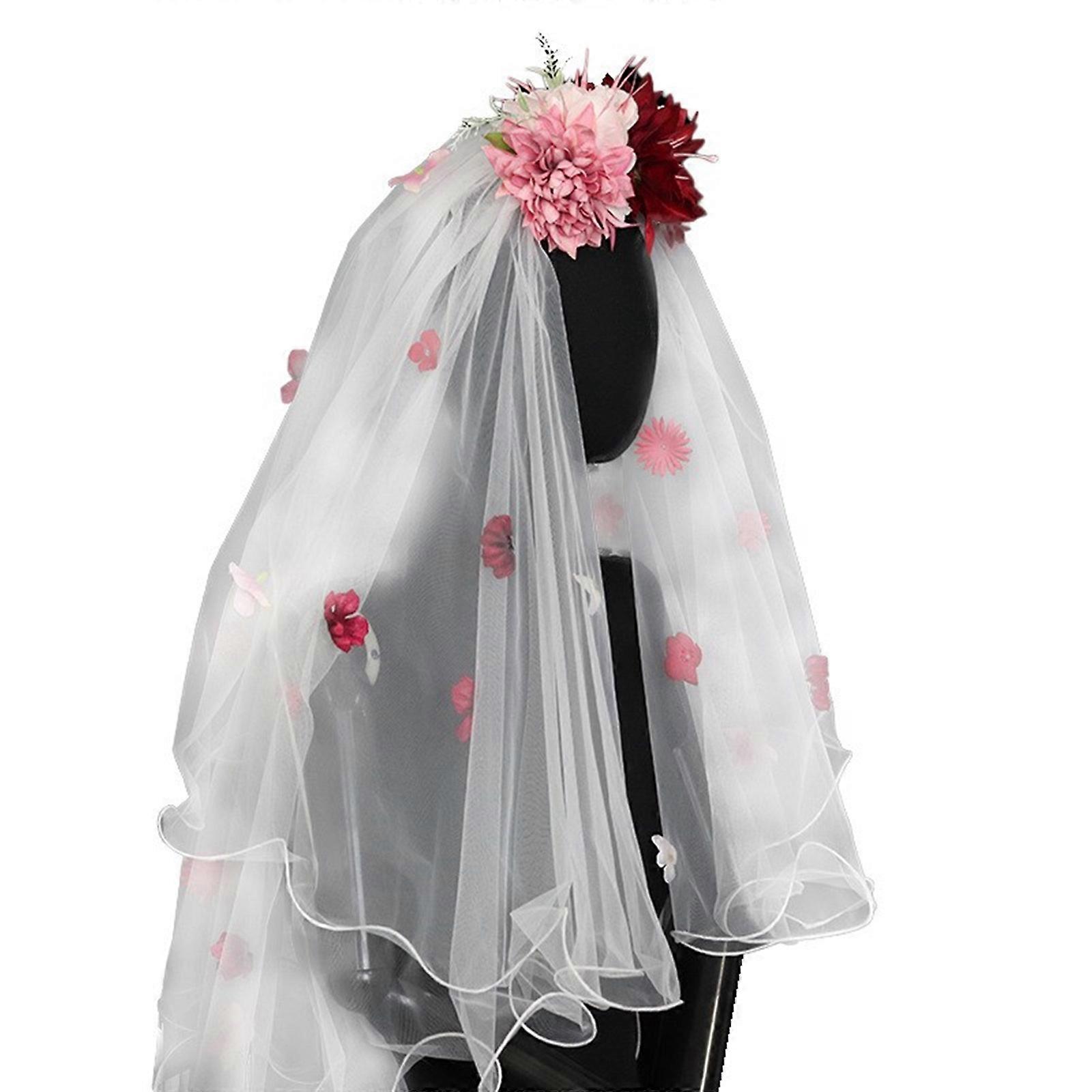 Realistic 3D Flower Long Tulles French Style Carnivals Bride Veil for Marriage Wedding Celebration Party Flower Veil Multicolor