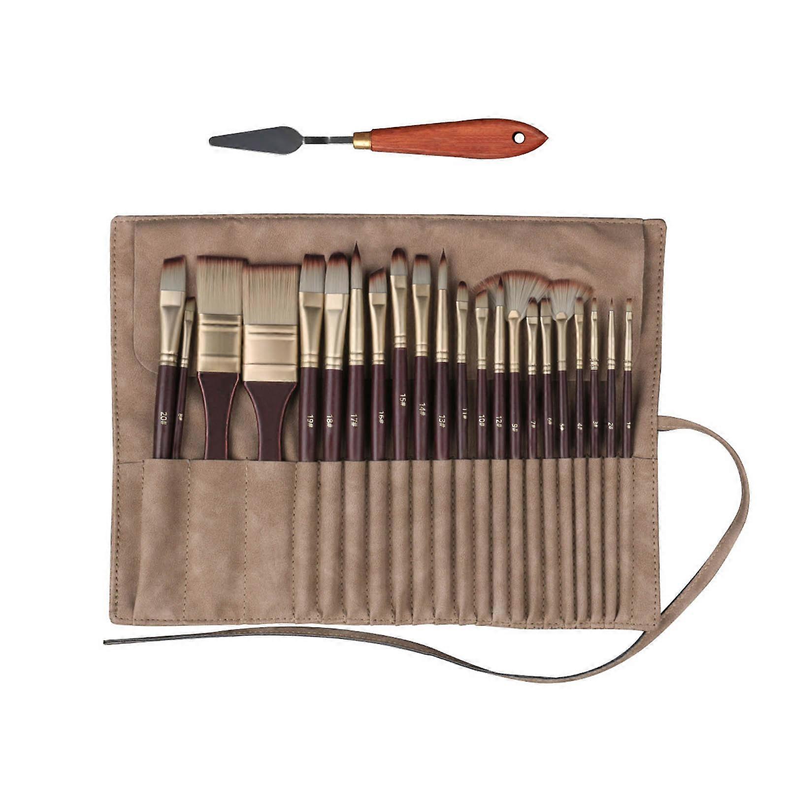 22Pcs Paintbrush with Brush Holder, Anti-sheding Nylon Paint Brush for Oil Acrylic Watercolor Painting Multicolor