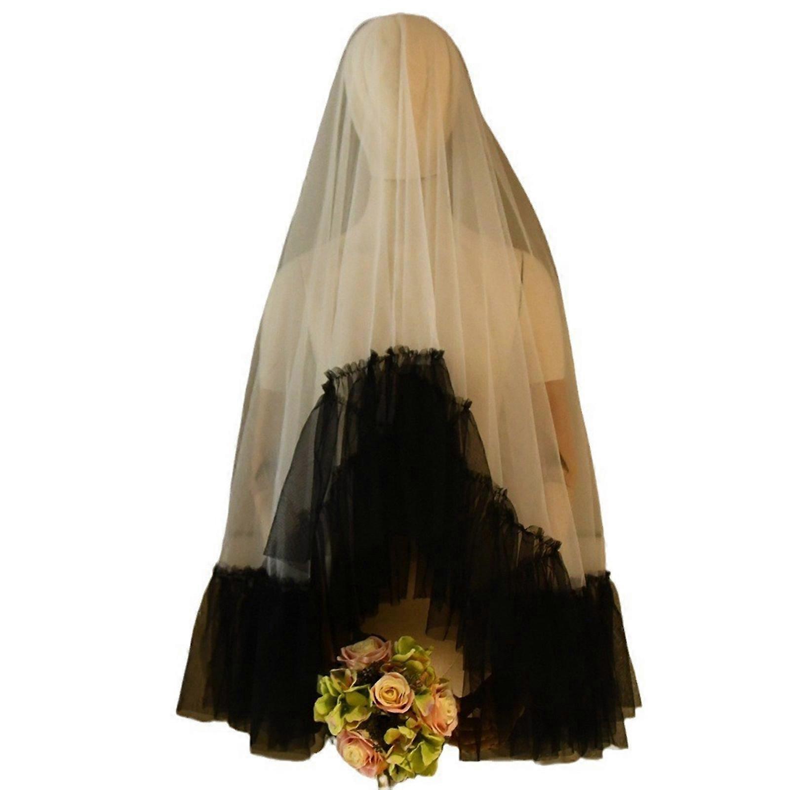 Double Color Bride Ruffled Trim Veil Women Tulles Bachelorettes Ceremony Wedding Veil with Fix Comb for Taking Photo Multicolor
