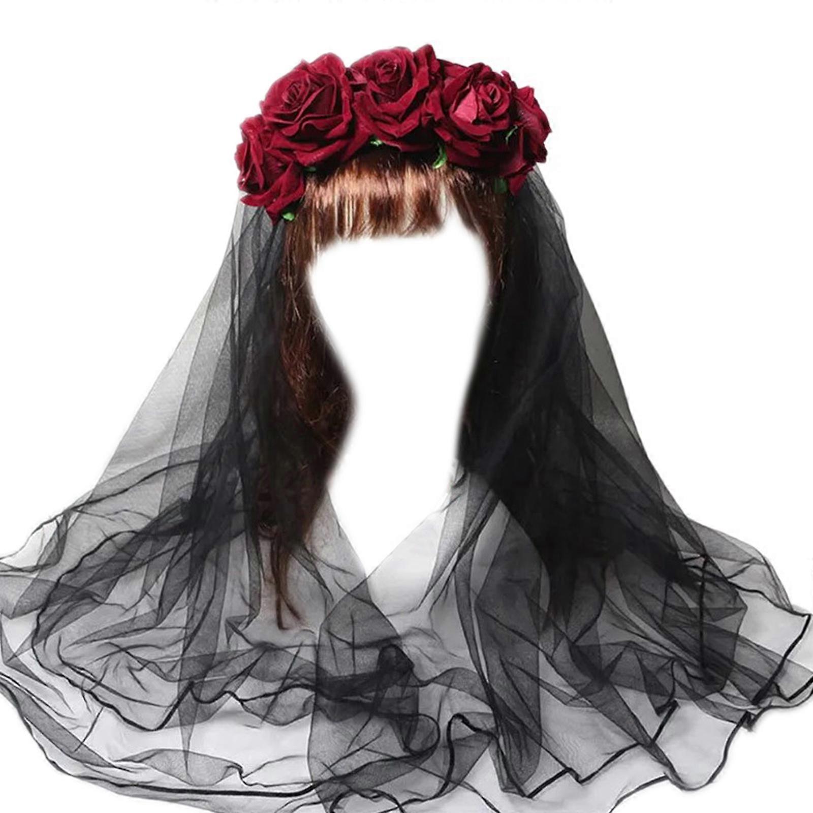 Gothic Style Flower Shape Hair Hoop with Veil Comfortable Headband Wedding Party Bride Hair Styling Flower Headband Multicolor