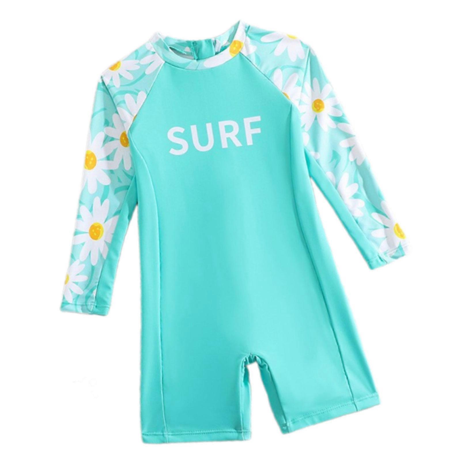 Girl 1 Pc Swimsuit Lovely Swimming Suit Long Sleeves Swimsuit Little Kids Flowers Bathing Suit for Beachwear Light blue 7Y