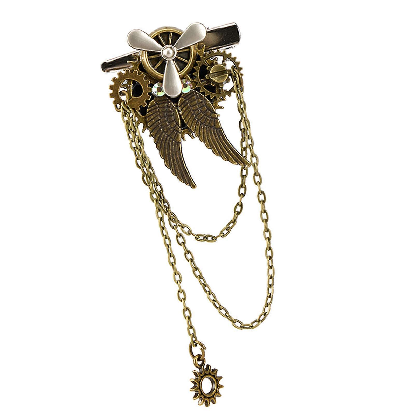 Gothic Wing Hair Jewelry With Brass Propeller And Intricate Gear Detail Adjustable Chain Clip Accessory Multicolor