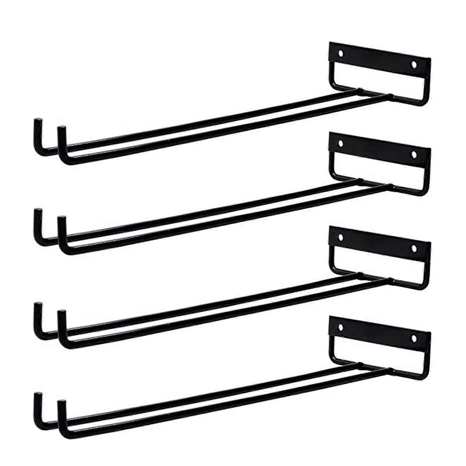 Set of 4 Under Cabinet Wine Glass Organizers Space Saving Designs Sturdy Iron Stemwares Hanger for Kitchen Decoration Multicolor