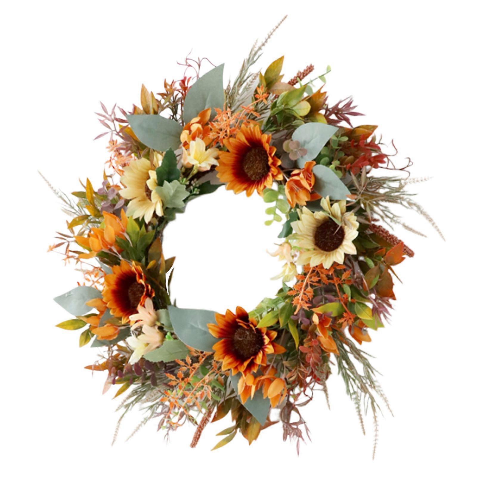 Handmade Sunflowers Wreath 50cm Decorative Garlands for Door and Window Display Thanksgiving Day Home Decoration Multicolor