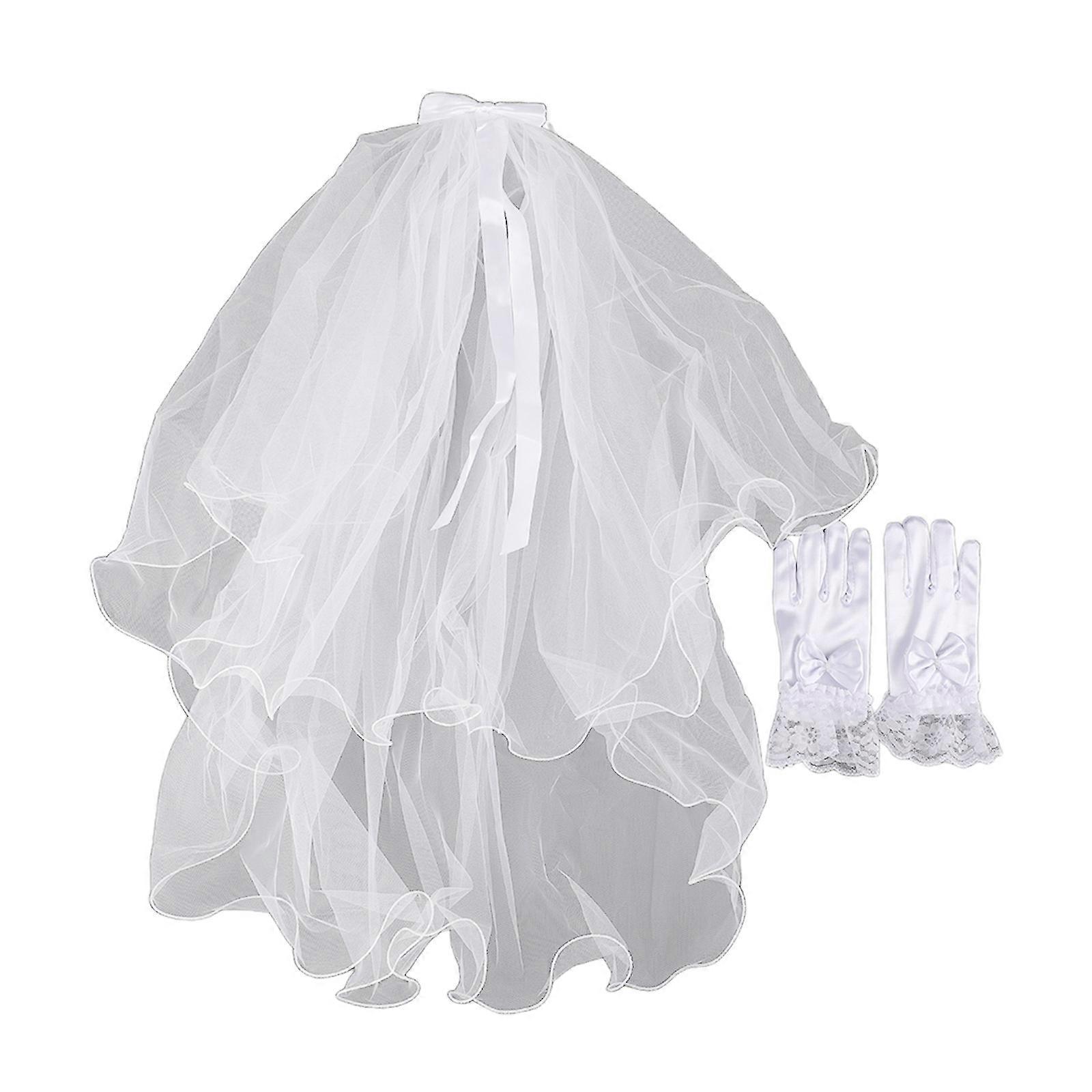 Bridal Veil Lace Gloves Decorations Bride To Be Gift Bridal Shower Wedding White Double Layer Sheer Mantilla Multicolor