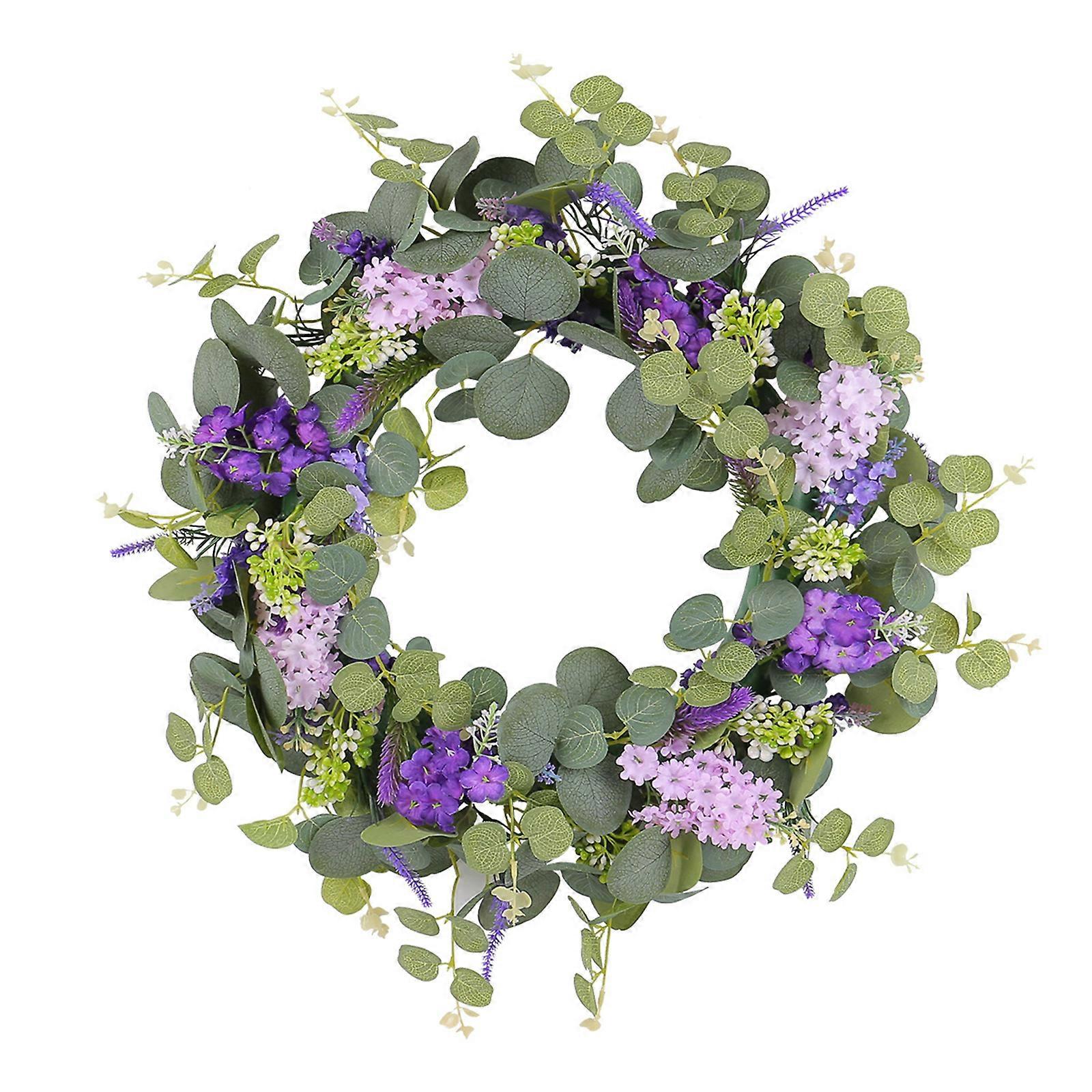 Artificial Spring Wreath Purpler Flower Wreath for Front Door, Window, Wedding Party, Indoor and Outdoor Decorations Multicolor
