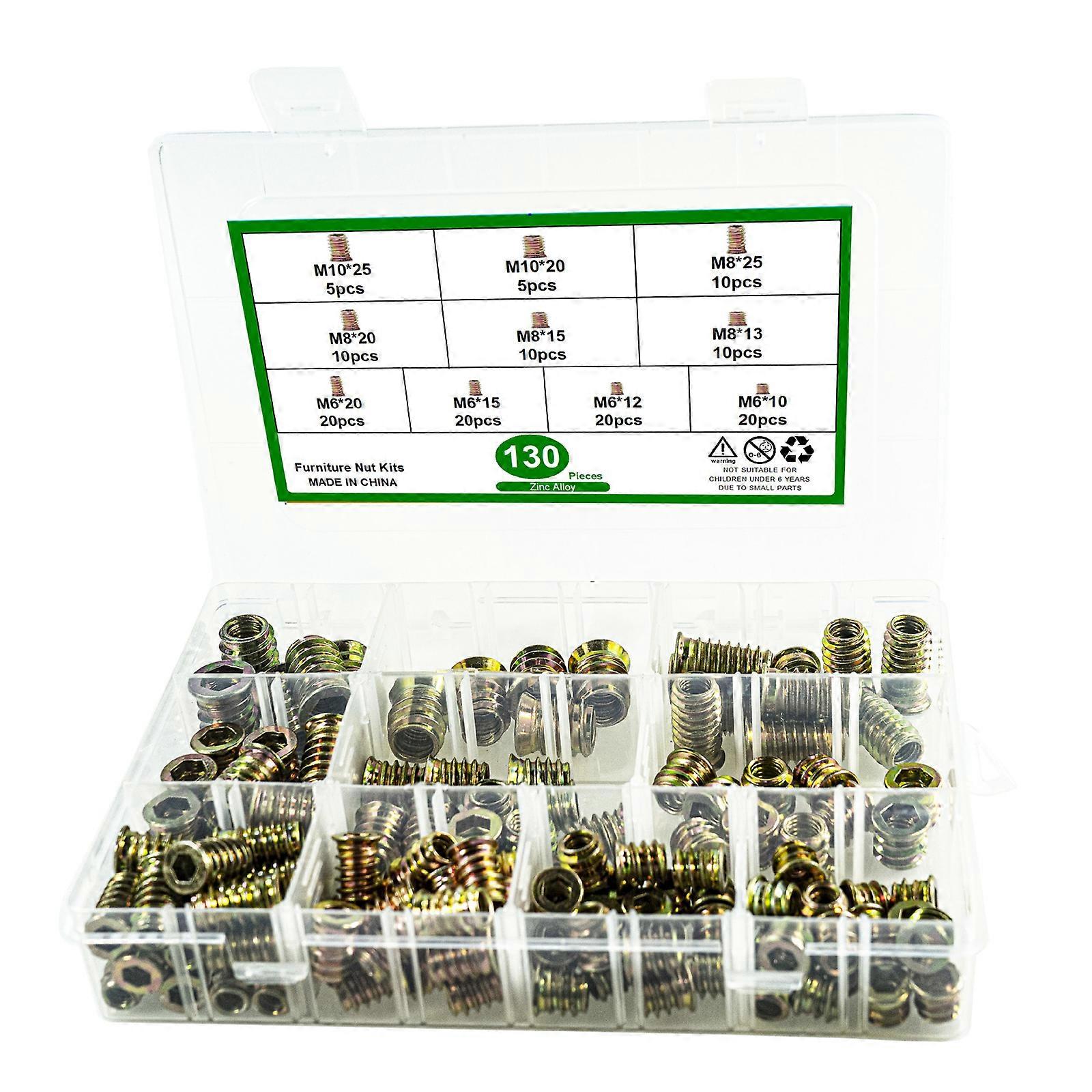 130pcs/set Reliable Threaded Inserts for Wood Metal Nut Assortment Bolt Fastener set for Strong & Stable Connection Multicolor