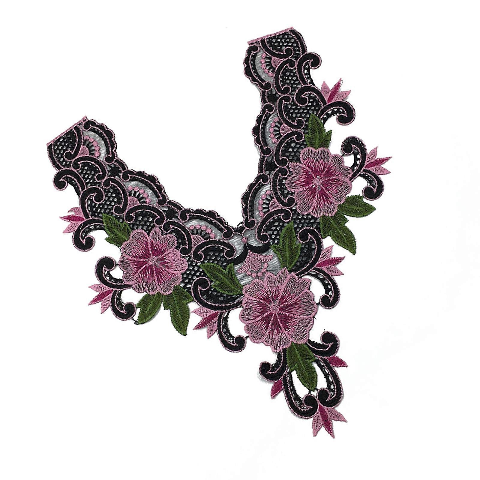 Meshes Versatiles Embroidery Collar Pattern Flower Embroidered Lace Collar for Stylish Outfits Pink Color