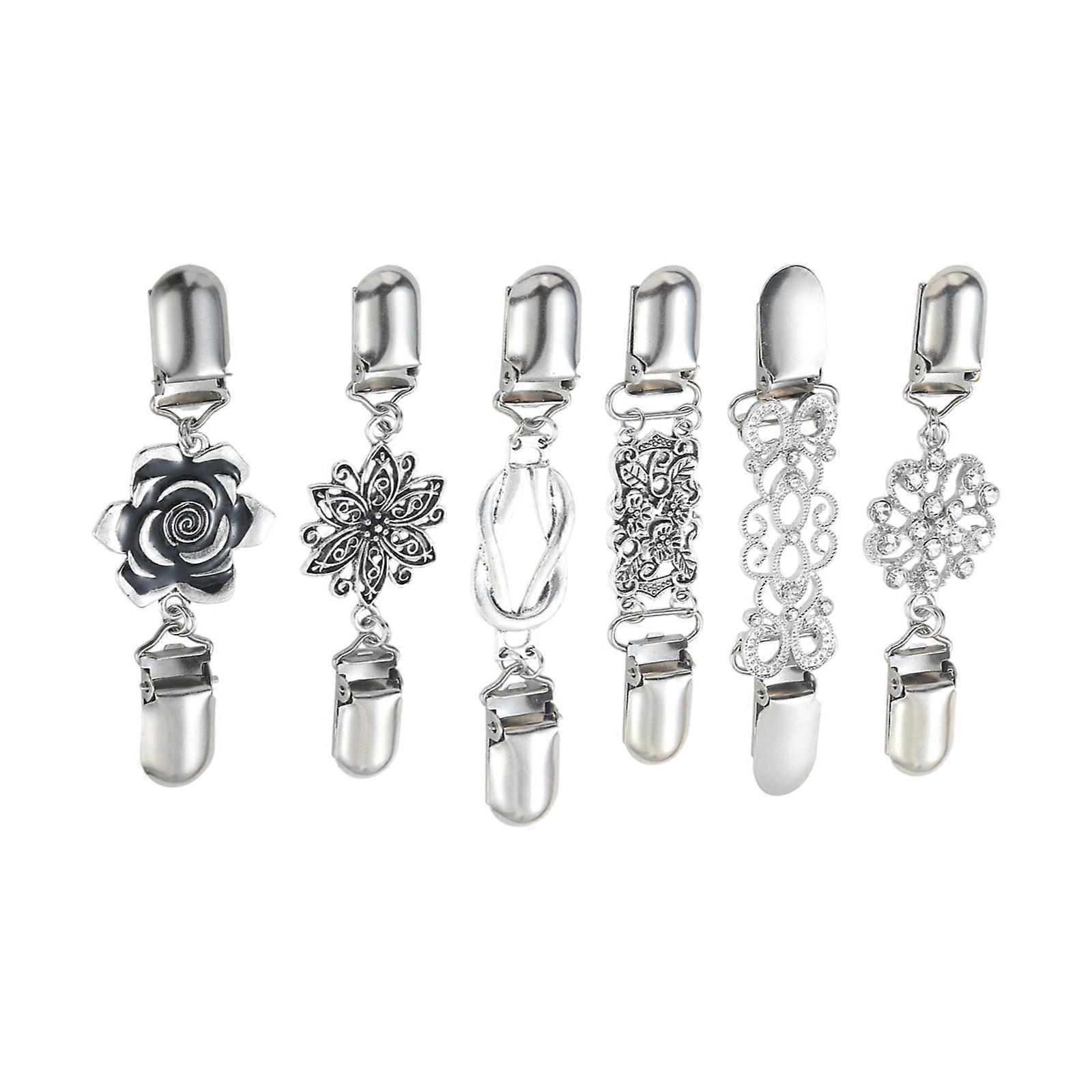 6Pcs Vintage Sweater Shawl Clip Shawl Scarf Metal Clip Cardigan Clip On Brooch Cardigan Safety Pin Sweater Scarf Brooch Silver