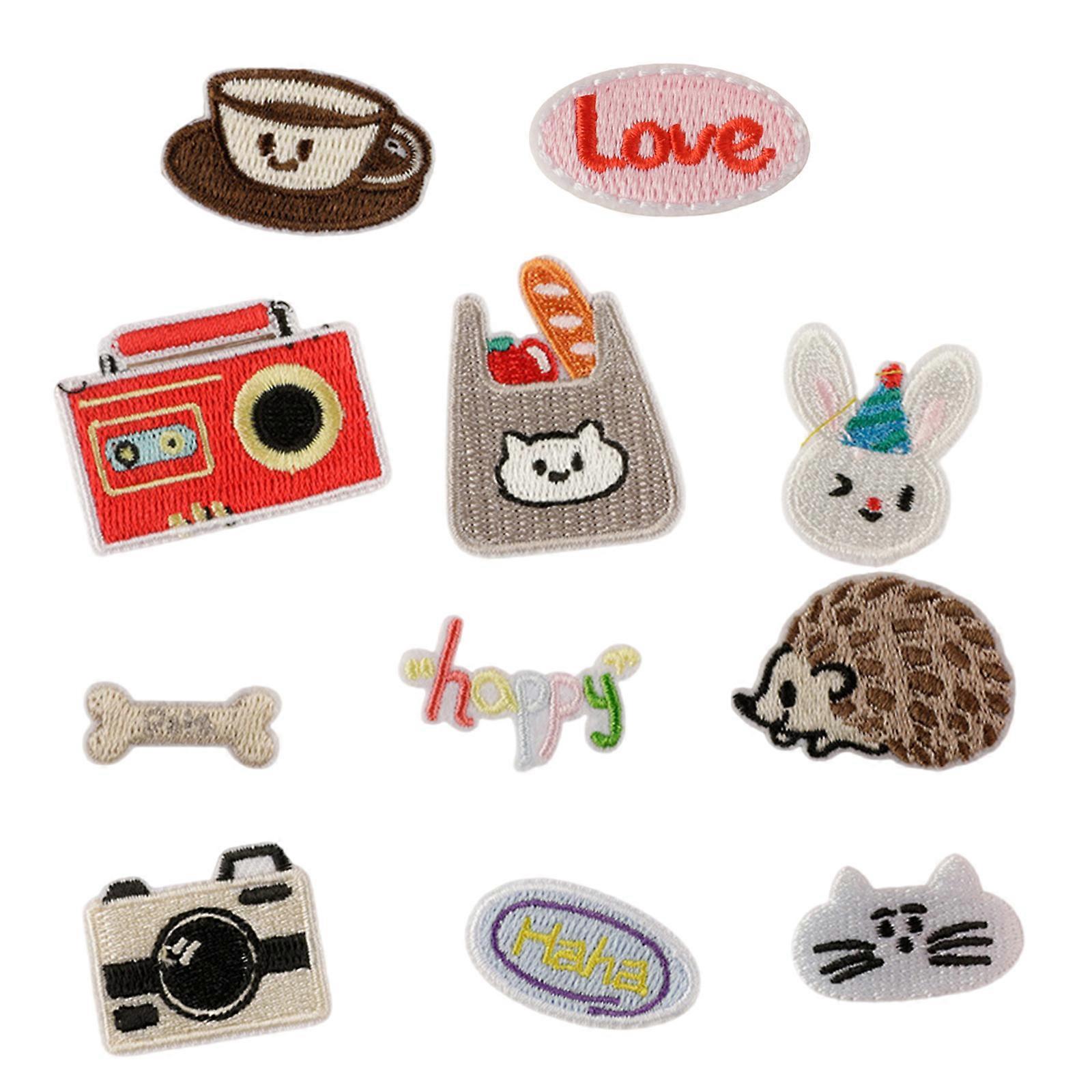 Set of 11 Cartoon Fabric Patches Sewing On Embroidery Applique Repair Patches For Hats Backpack Various Clothes Decoration Multicolor
