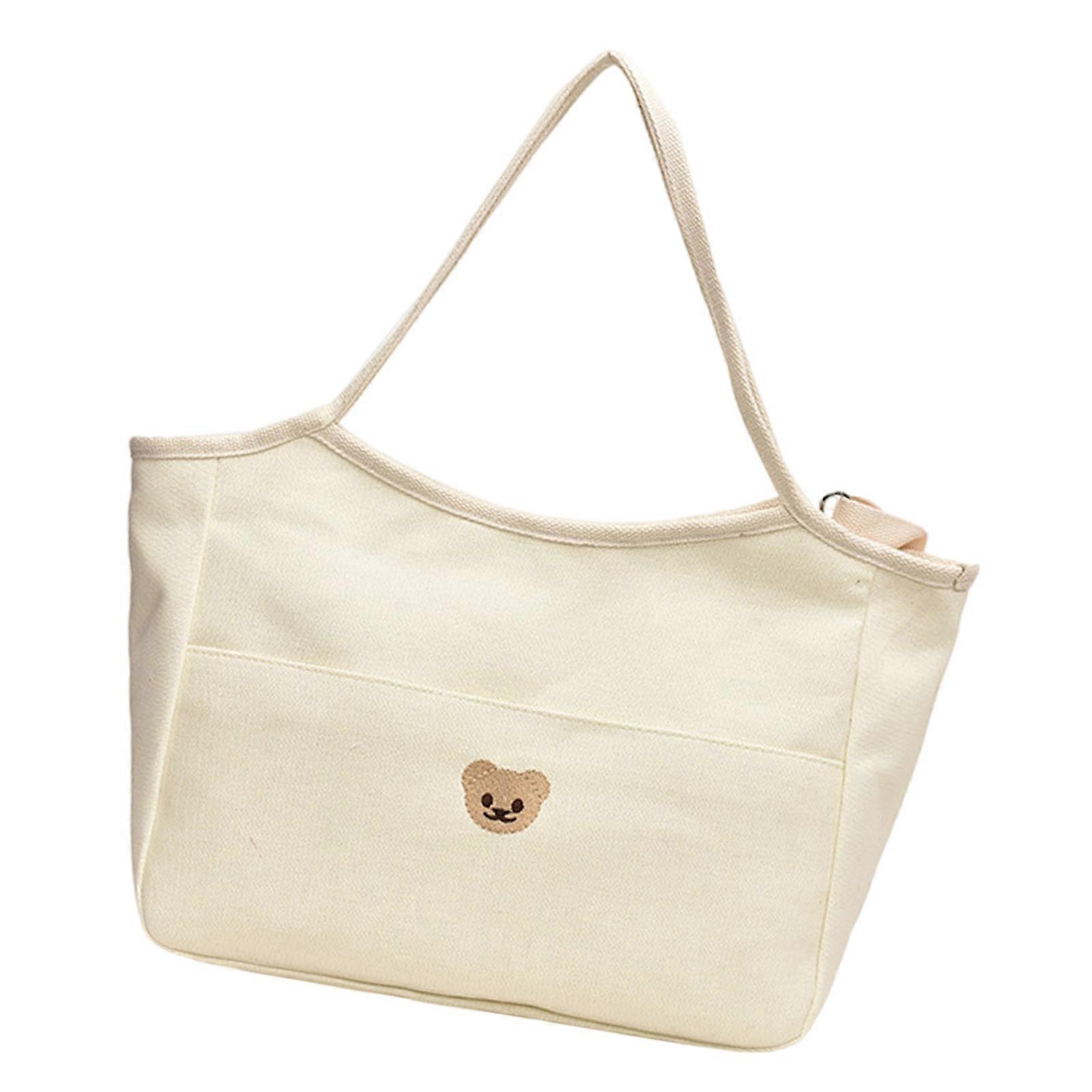 Diaper Bag Cotton Large Capacity with Bear Embroidery & Multiple Pockets Watertight Mom Bag Easy to Carry Multicolor