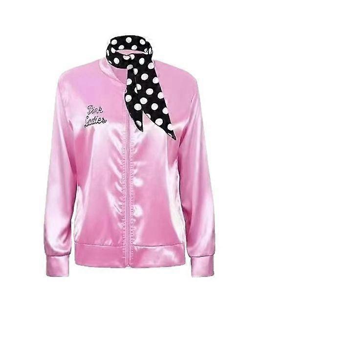 Ladies Pink Jacket Satin ZIPPER Costumes Party Halloween Tops Shirts COAT +Scarf