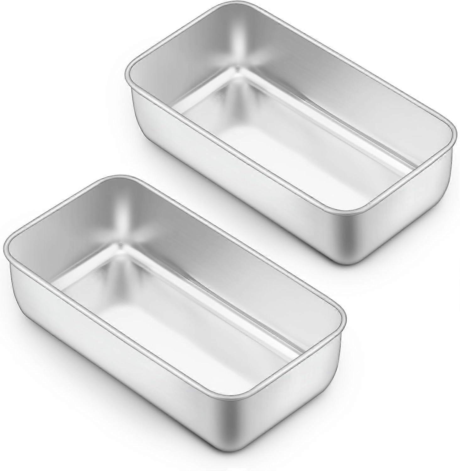 Onader Loaf Tin Set of 2, Stainless Steel 2lb Bread Loaf Pan, Rectangular Cake Mould for Baking Banana Bread/Meatloaf/Lasagna, Healthy & Sturdy,