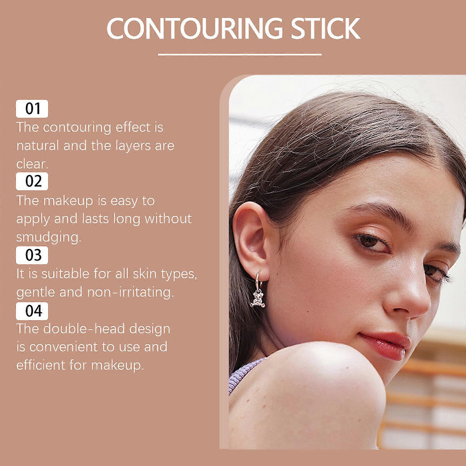 2-in-1 Face Highlighter & Contouring Stick, Dual-Ended for Enhanced Facial Sculpting and Shaping, 7G (Brown + Light Pink)