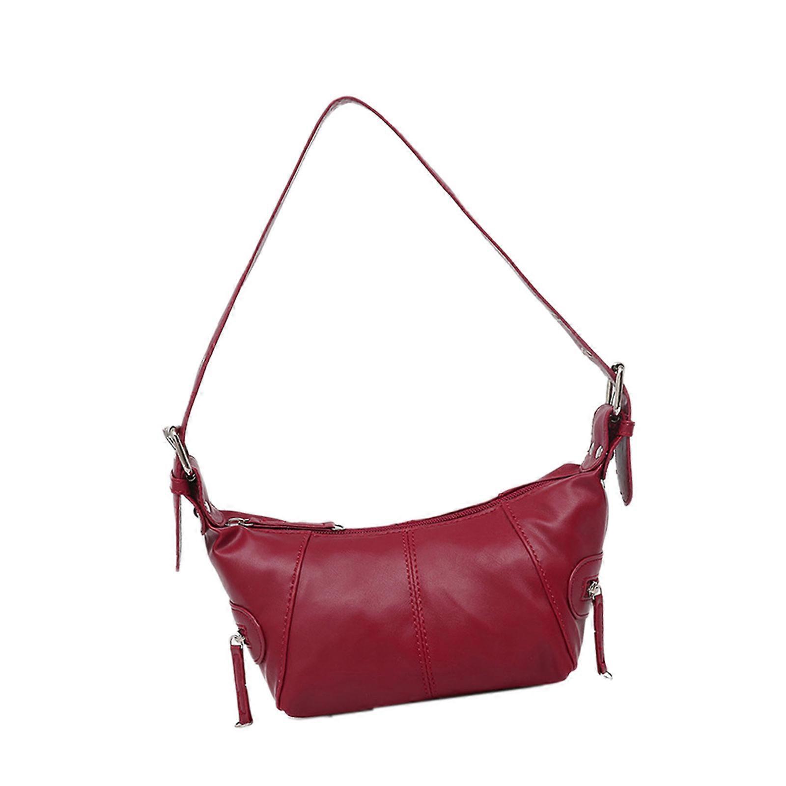 Women Stylish Armpit Bag Solid Color Shoulder Bag Commuting Bag Retro Underarm Bag Shopping Bag for Everyday Burgundy
