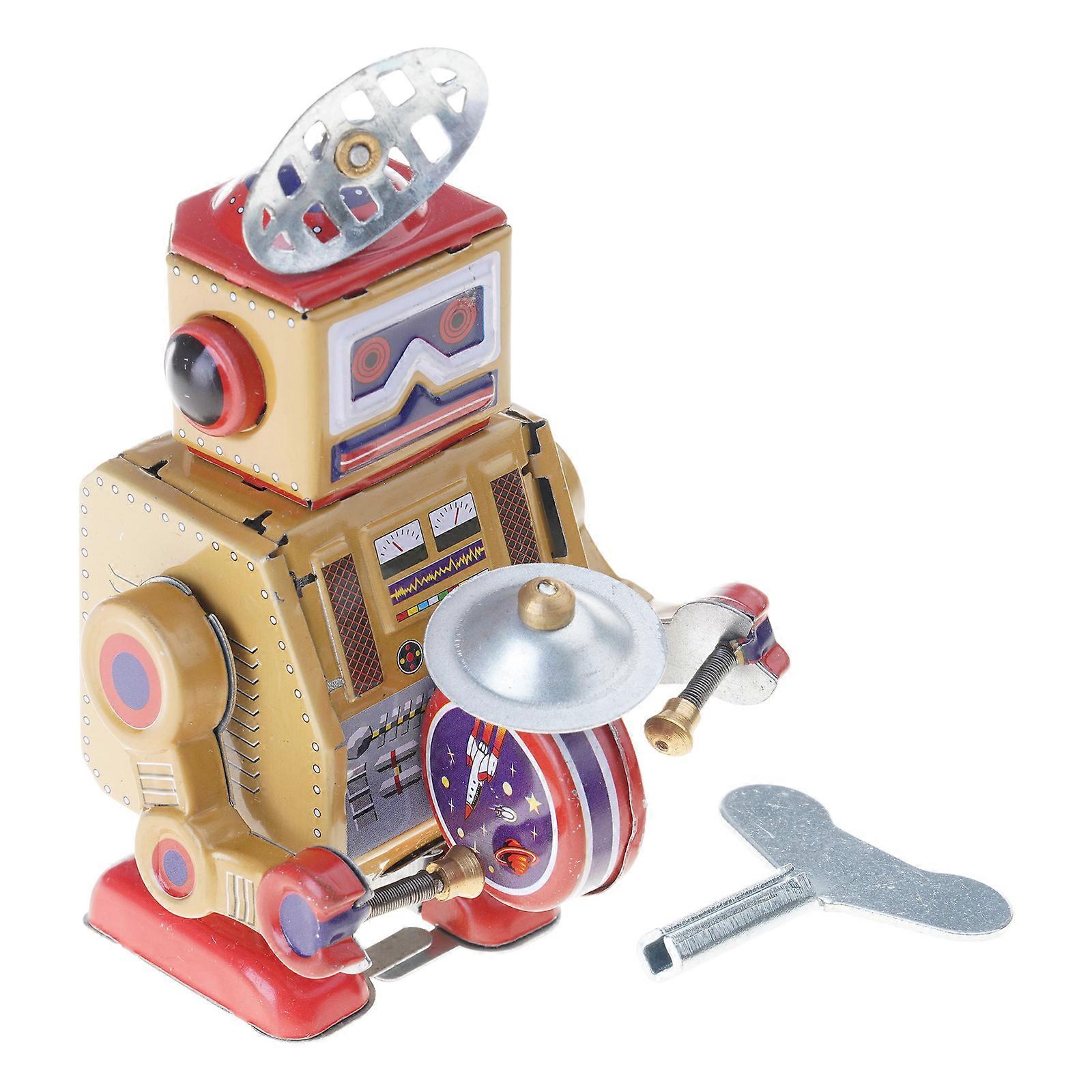 Handcrafted Robot Tin Drummer Model Classical Wind Up Toy Vintage Nostalgic Post-80s Charm for Collectors Multicolor