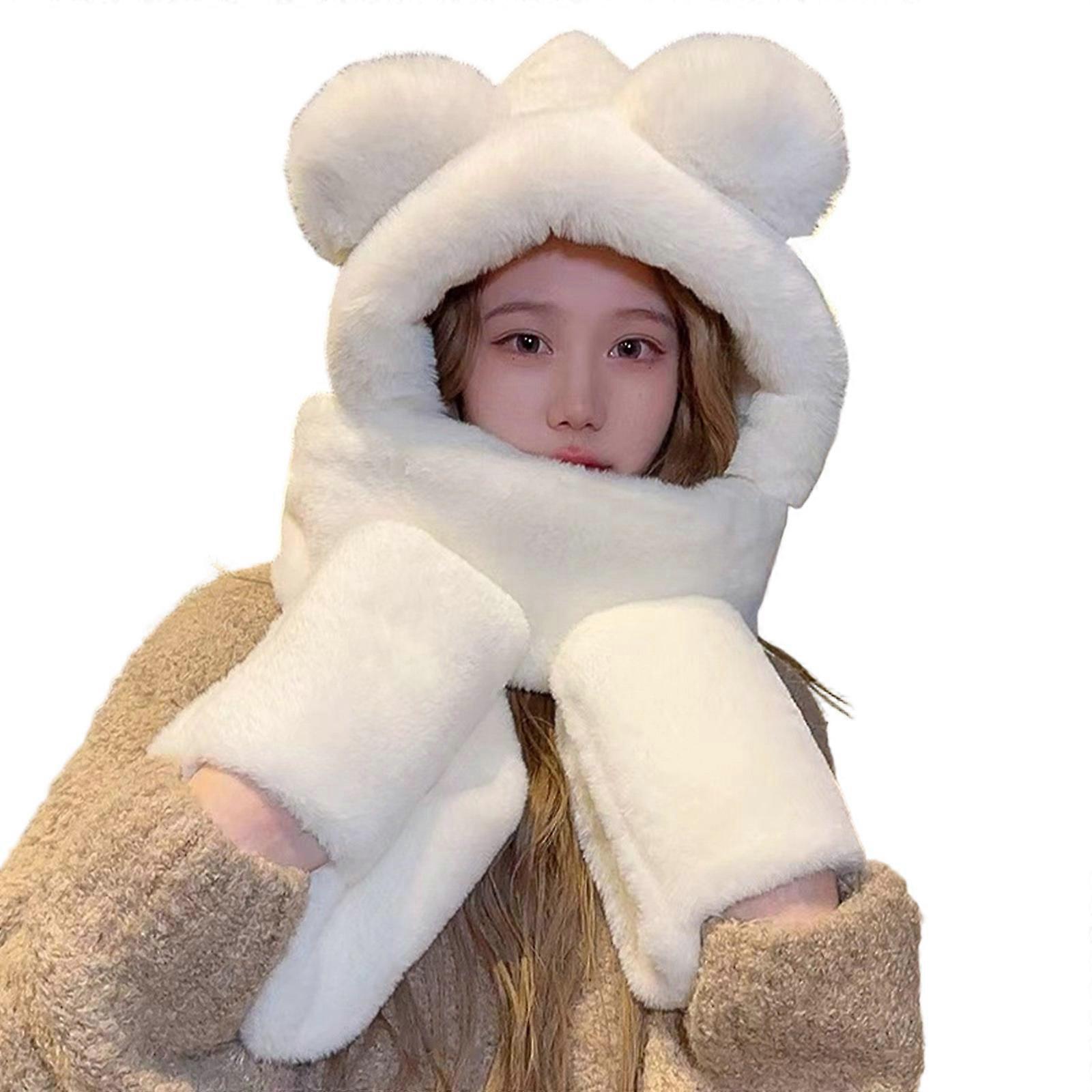 Unisex Warm Hat Trapper Hat Stylish Cap Warm Gloves Ushanka Hat for Outdoor Winter Mask for Skiing Camping Hiking White