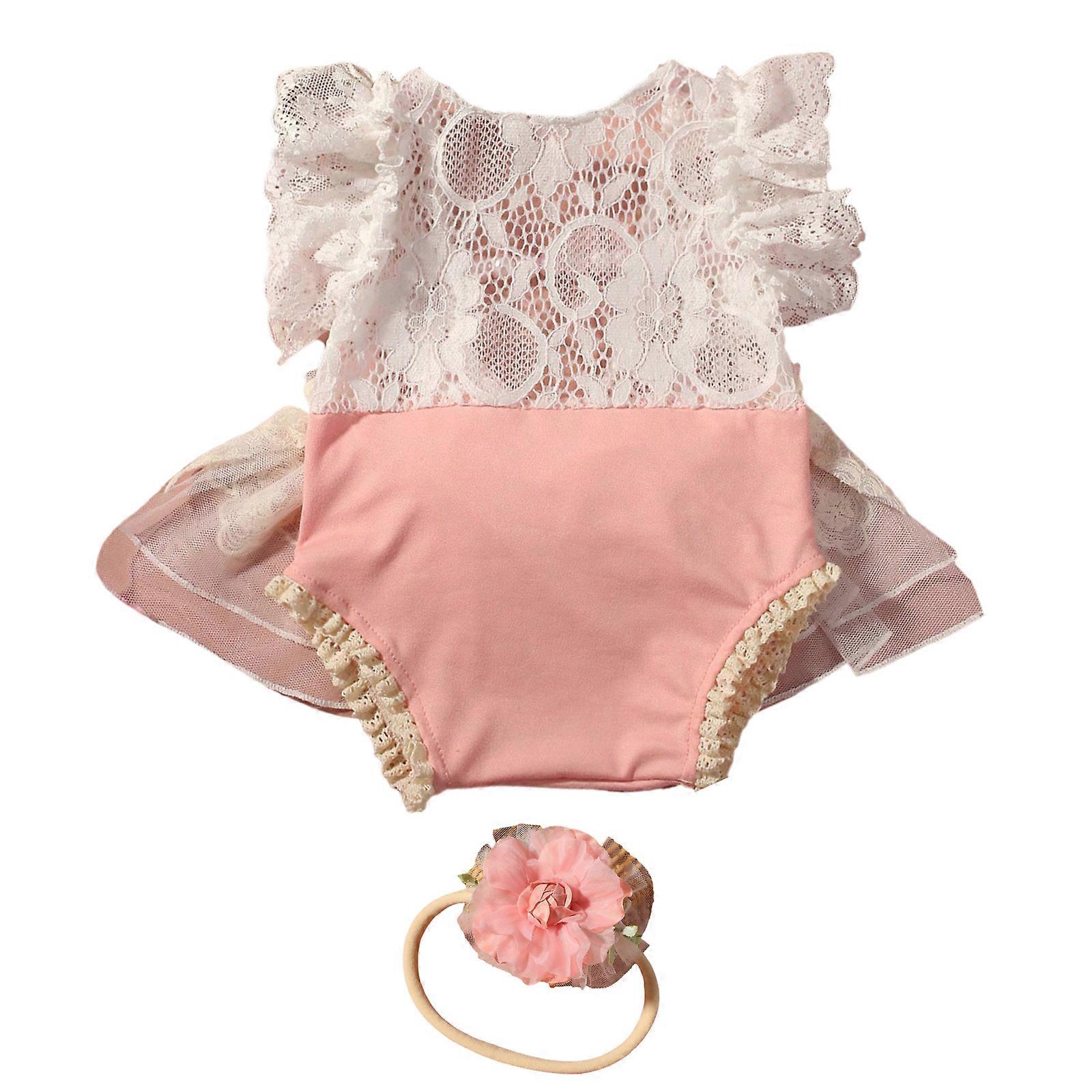 Comfortable Baby Headband Lace Romper Jumpsuit Set with Delicate Ruffle and Bowknot Charm for Stylish Photoshoots S