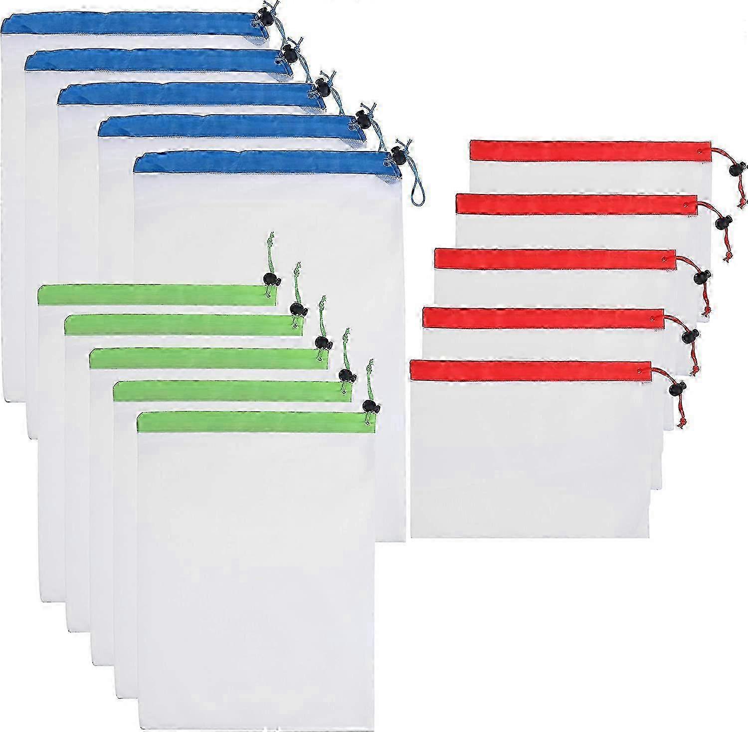 Multi-Sized Washable Mesh Bags, 15pcs Zero Waste Eco-Friendly Reusable Storage for Grocery Vegetables Fruits Household Travel