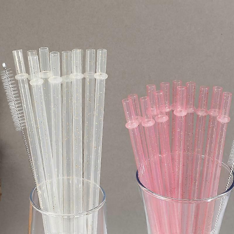 13pcs/set Reusable Plastic Straws with Cleaning Brush, Glittery Golden Speckles Design, Perfect for Thanksgiving, Christmas, Halloween Party